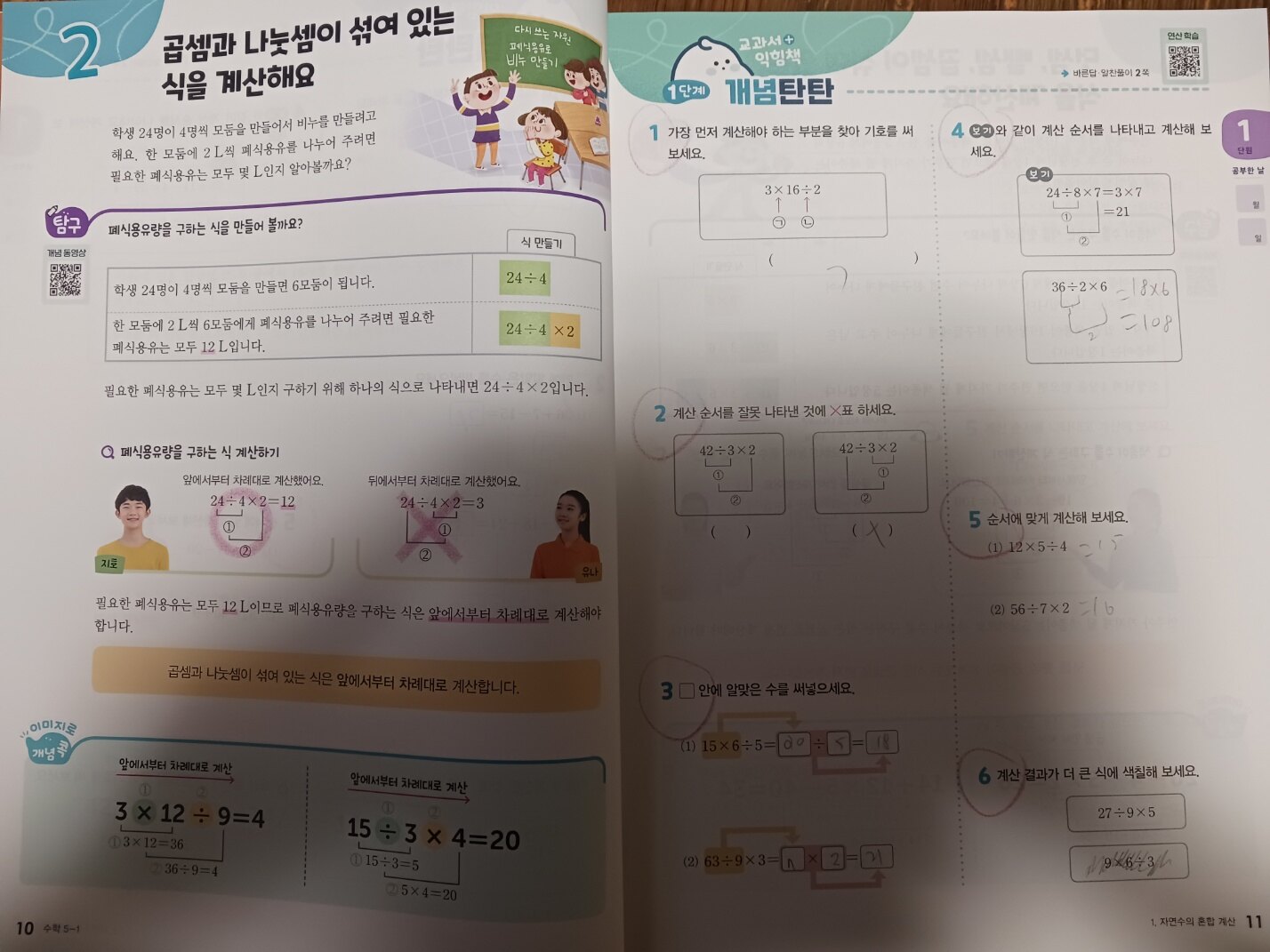 교과서 순서에 맞춘 개념 설명과