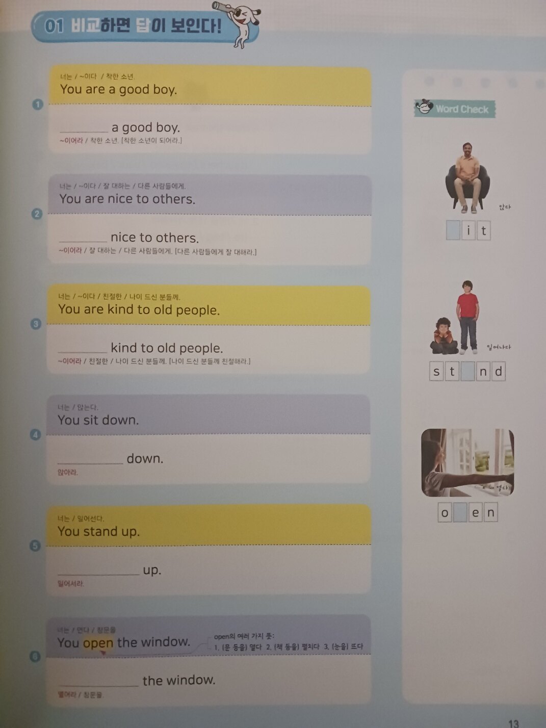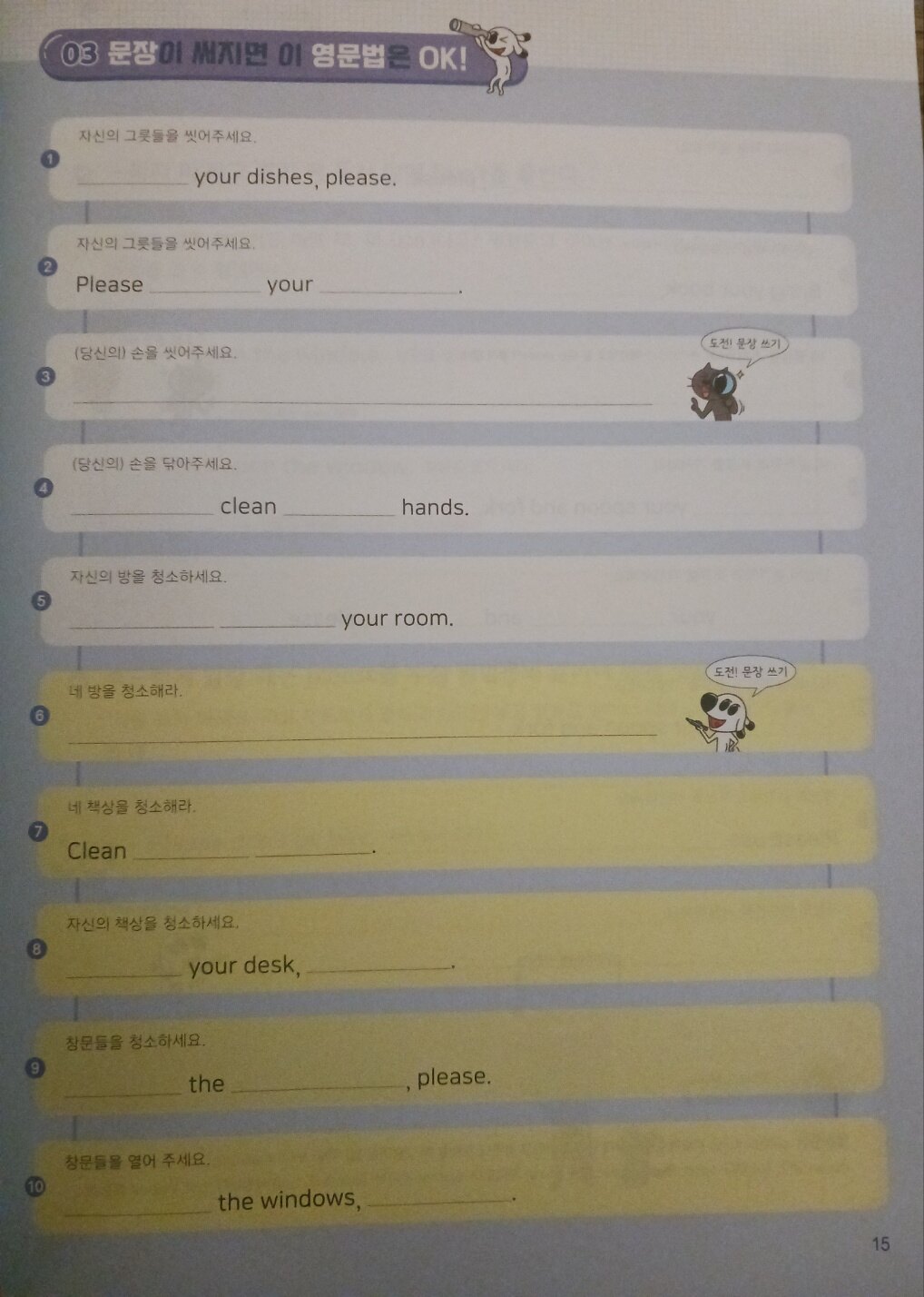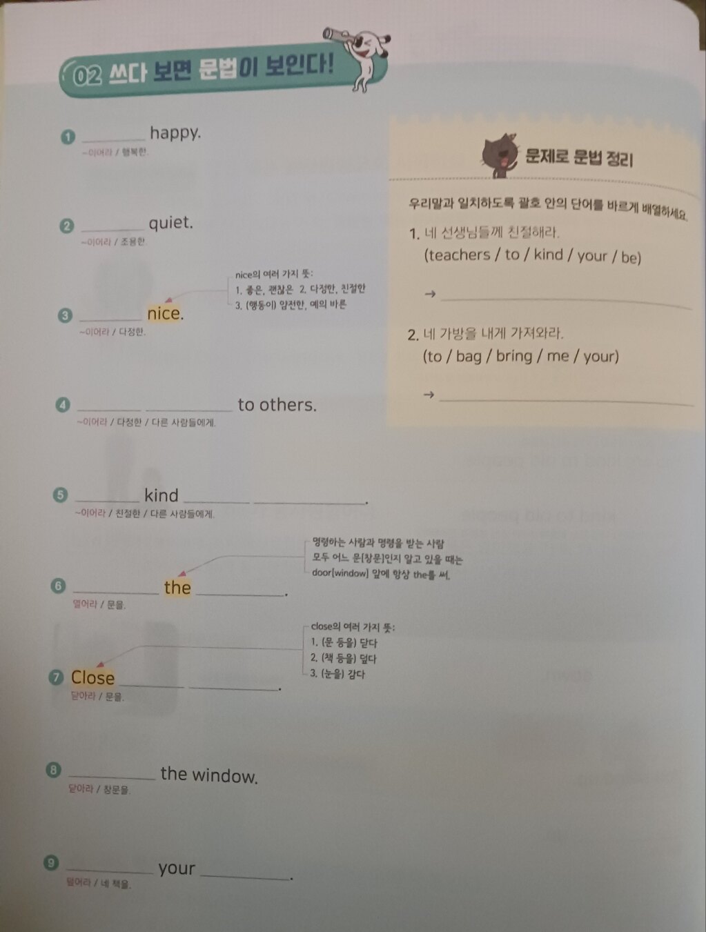 앞에서 배운 문법을 적용하여 문장을 완성하면서