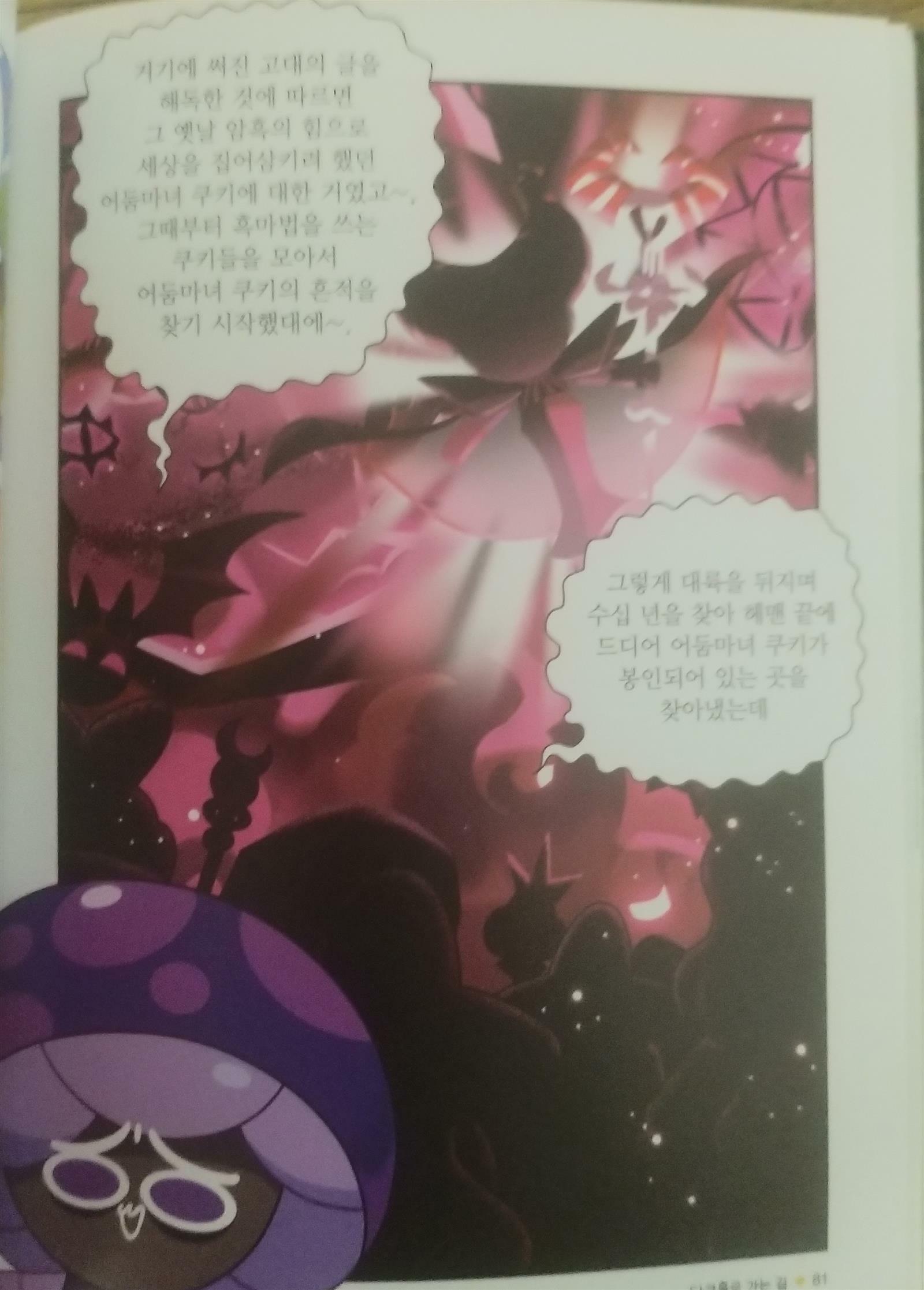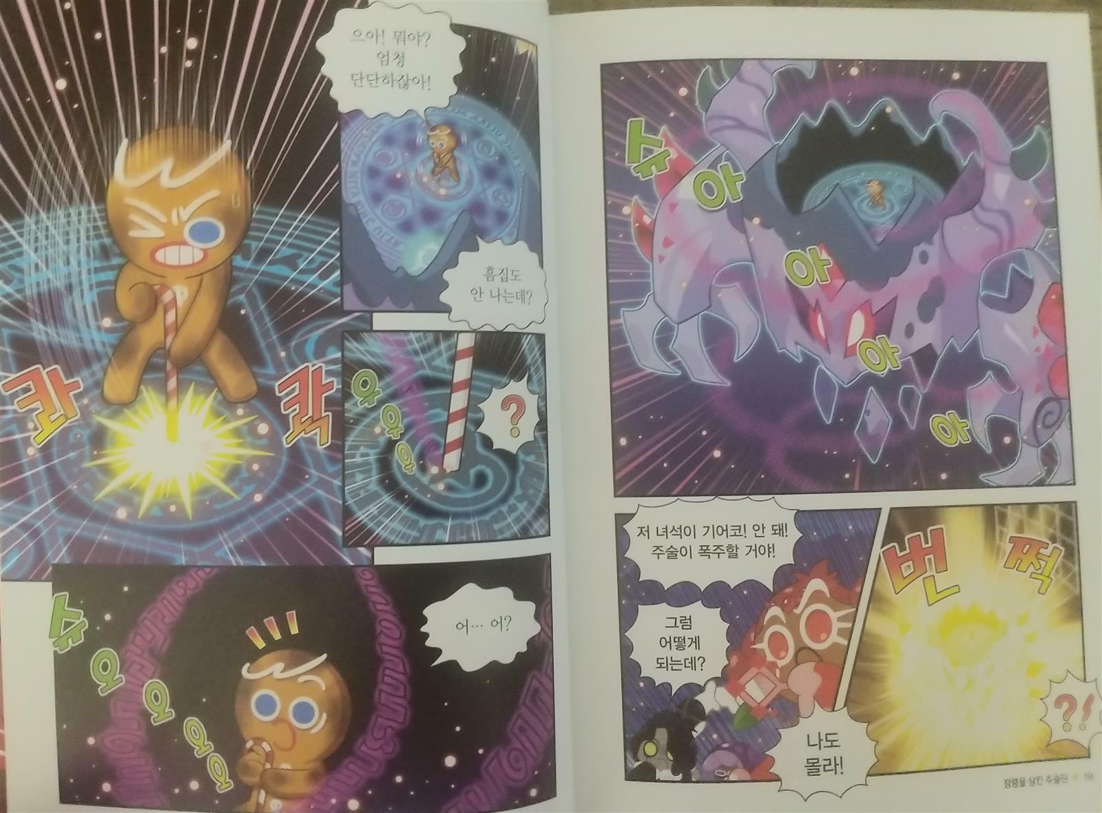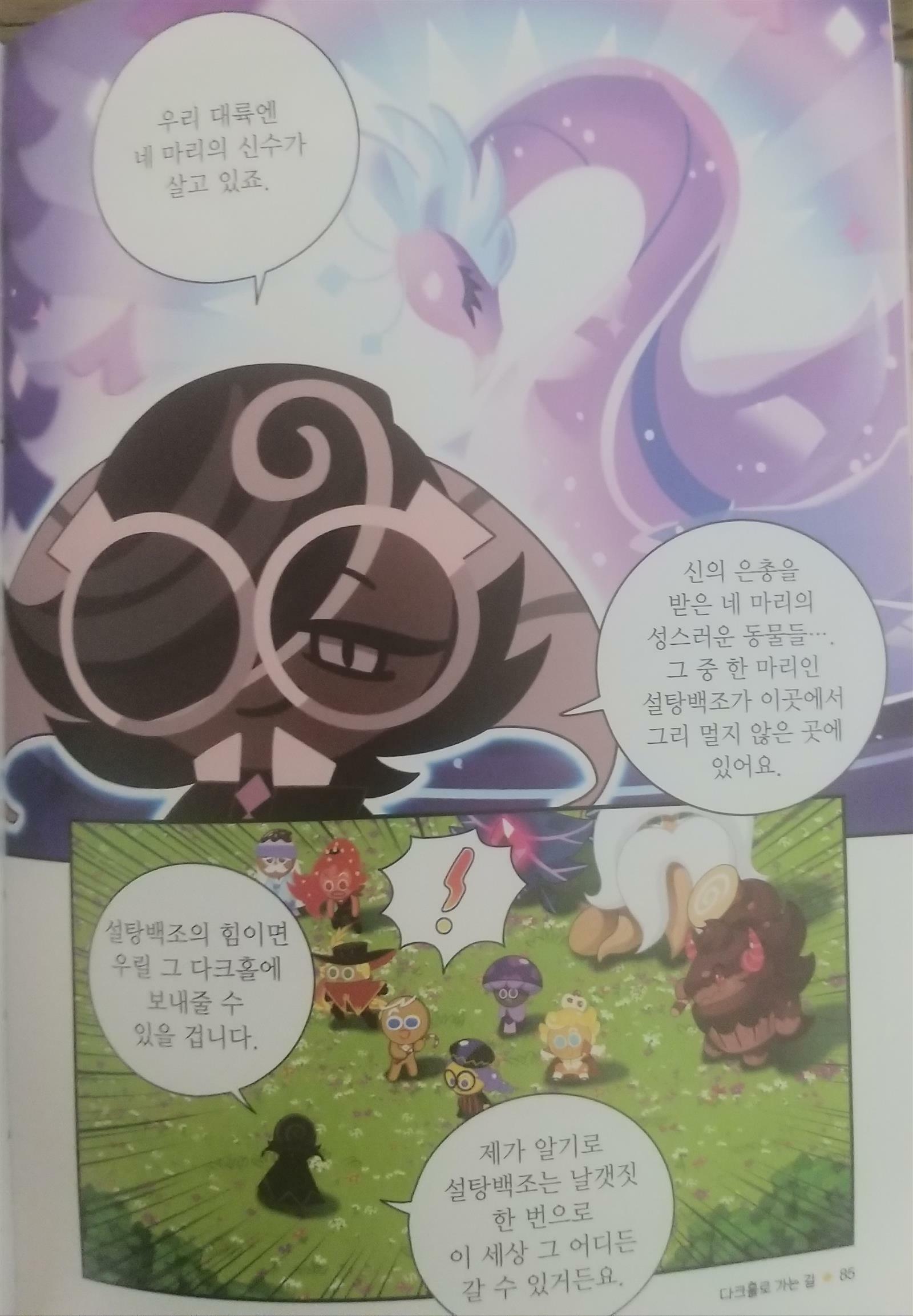 쿠키런 킹덤 게임을 좋아하는 초4아들 쿠키런 책들도 너무나 좋아하는데요~~ 8권은 독버섯 쿠키가 용감한 쿠키에게 지팡이를 떨어뜨리고 나무정령과 싸우는 장면부터 나오네요.. 그루터기 정령의 정신을 가둬놓은 주술진을 용감한 쿠키는 마법지팡이로 깨뜨리려하고 벨벳 케이크맛 쿠키는 베로베로에게 시켜 그루터기정령에게 불을 붙여 거대하게 만들어 버리지요.. 베로베로를 불태우는 푸른 불꽃을 없애기위해 어둠마녀 쿠키의 힘이 필요한 감초맛 쿠키일행은 석류마을의 주술을 풀어 그힘으로 대륙끝으로 이동하게 되고 어둠 마녀의 쿠키의 부활을 막기위해 신수인 설탕백조를 찾아가려는 용감한쿠키일행들 나뭇가지틈 호수에 사는 설탕백조를 과연 찾을수 있을지 너무나 흥미진지한 쿠키런 킹덤 8권 오염된 석류의 숲이었답니다~~ 책뒤에 있는 레벨업 퀴즈로 용감한 쿠키일행의 활약을 순서대로 아들과 이야기해보는 시간도 가질수있어 좋았답니다.. 벌써부터 쿠키런 킹덤 9권 언제 나오냐고 물어보네요~~ 출판사로부터 도서협찬을 받았고 본인의 주관적인견해에 의하여 작성함 #쿠키런킹덤8 #오염된석류의숲 #서울문화사 #용감한쿠키 #모험이야기