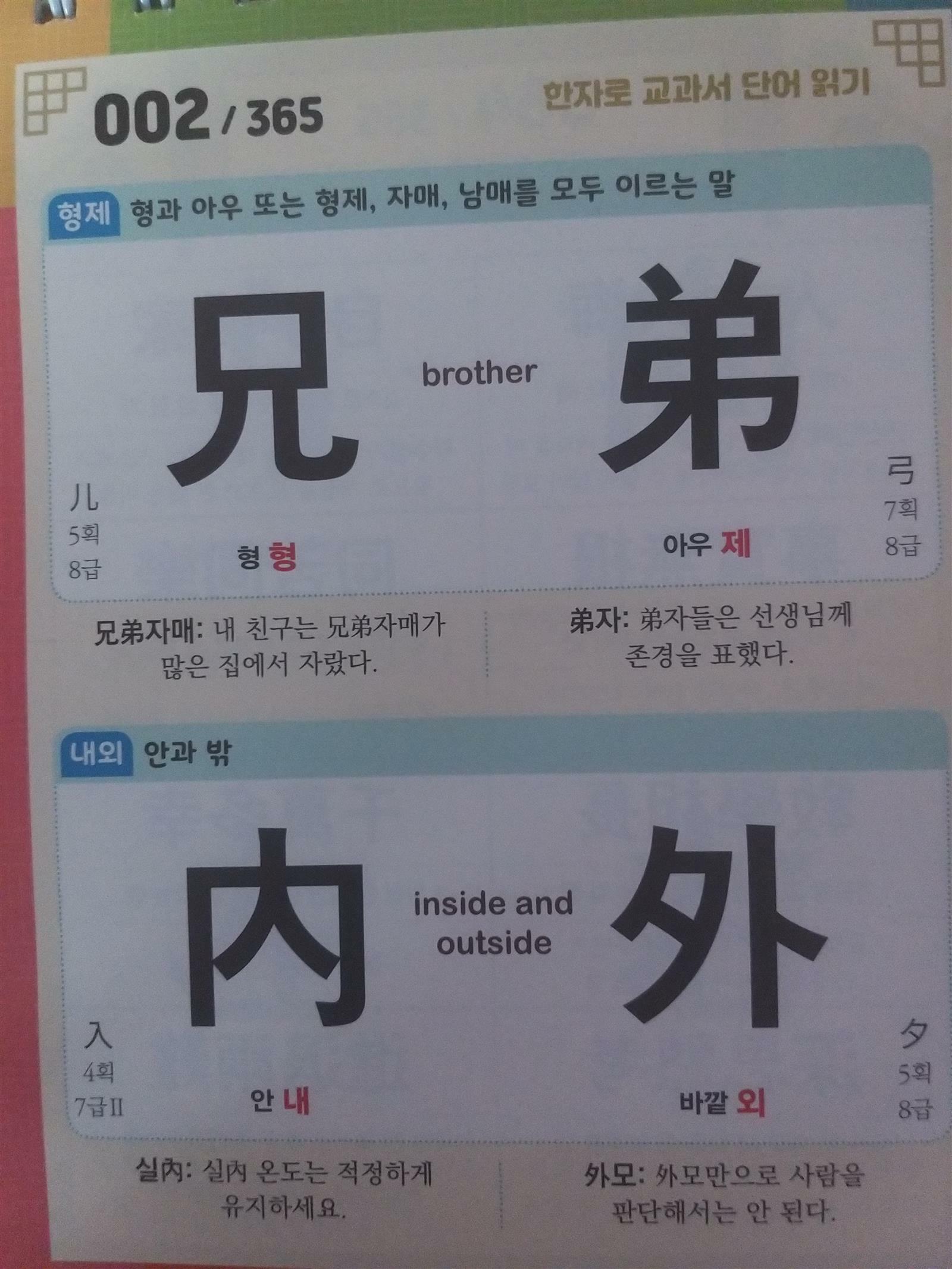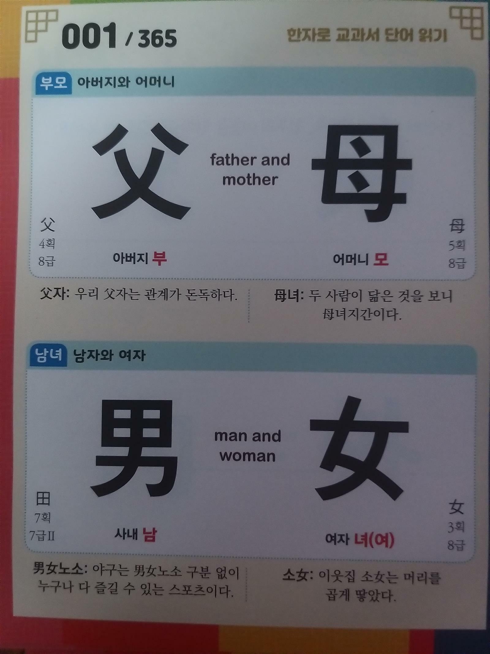 초등 1학년때 방과후 한자반에 들어가서 6개월간 열심히 배워서 대한검정회 준5급을 딴 우리 아이 초등2학년때 코로나로 인해 한자시험응시도 어려워지자 한자공부를 멀리했고 초등3학년이후는 과목수가 늘어서 한자공부할시간이 없어졌지요ㅜㅡㅜ 하지만 한자어는 국어의 70%를 차지하고 있어 국어어휘를 이해하는데 너무나 중요한 요소인것은 분명한 사실이지요.. 이번 여름방학때 한자공부를 다시 시작해보고 싶었는데 좋은기회로 반석출판사 탁상용 초등한자 하루꼭 365를 만나 보았지요~ 하루 4개 한자 부담없는 양으로 한자와 영어까지 익힐수 있고 8급한자부터 5급까지 한자획수와 한자 쓰임 문장까지 있어 한자를 이해하는데 너무나 좋네요^^ 교과서 필수 단어가 수록되어 365일간 하면 약 2000개 단어 학습을 할수있다니 ~ 한자도 배우고 국어어휘력도 키울수있어 문장 문맥을 이해하는 문해력 또한 쑥쑥 늘어나기를 기대해봅니다^^ 매주 한자급수 시험대비하기도 있어 한자급수준비하는데도 참좋을꺼 같아요~ 탁상달력처럼 늘 머리맡에 보이는곳에 두고 한자공부를 눈으로 먼저 보고 공부할수 있는 하루꼭! 365로 우리아이 한자어휘력 오늘부터 키워나가보겠습니다^^ 출판사로부터 도서협찬을 받았고 본인의 주관적인견해에 의하여 작성함 #탁상용초등한자 #하루꼭365 #반석출판사 #하루4자 #초등문해력향상 #교과서필수단어수록 #한자급수시험완벽대비