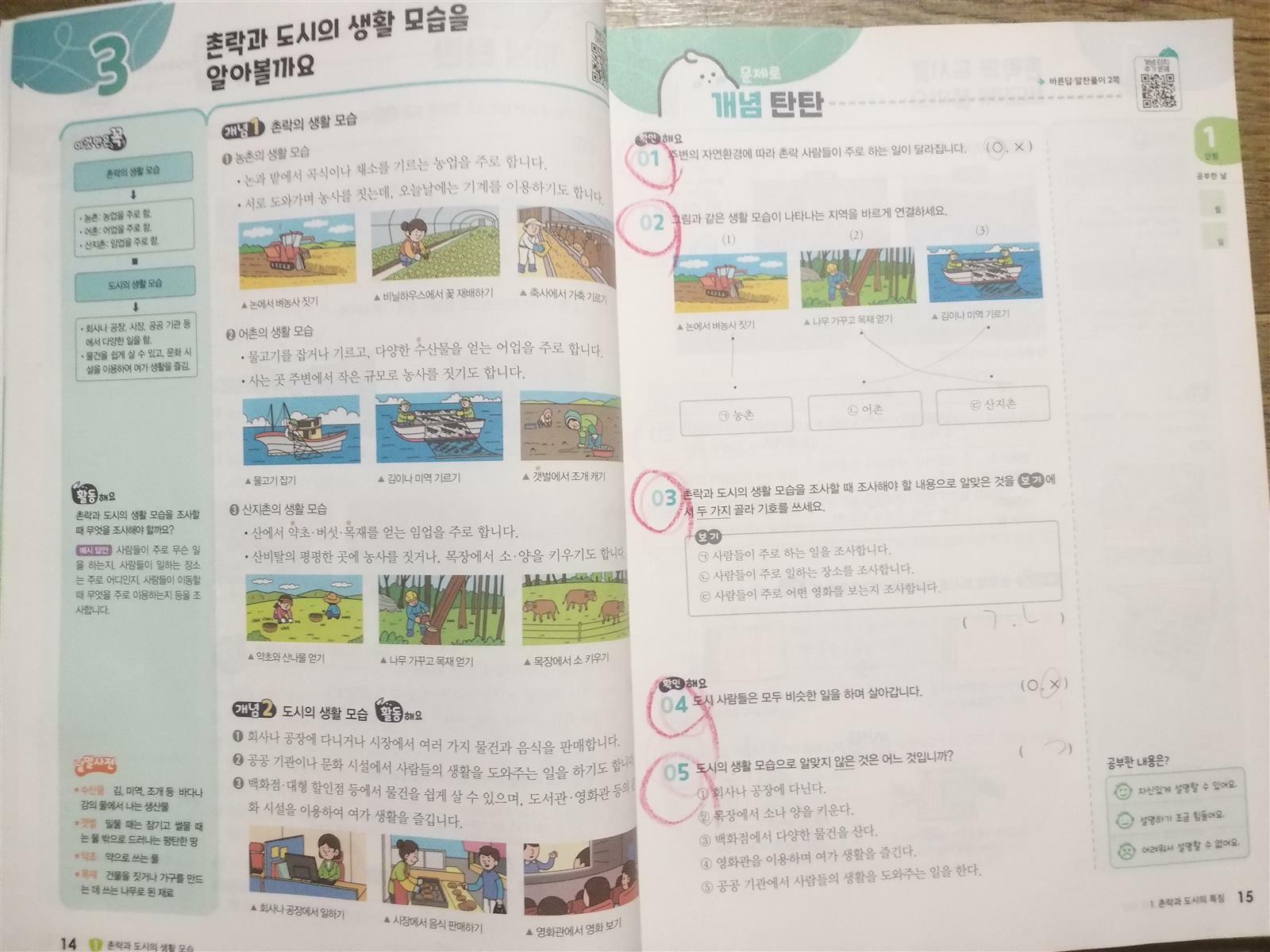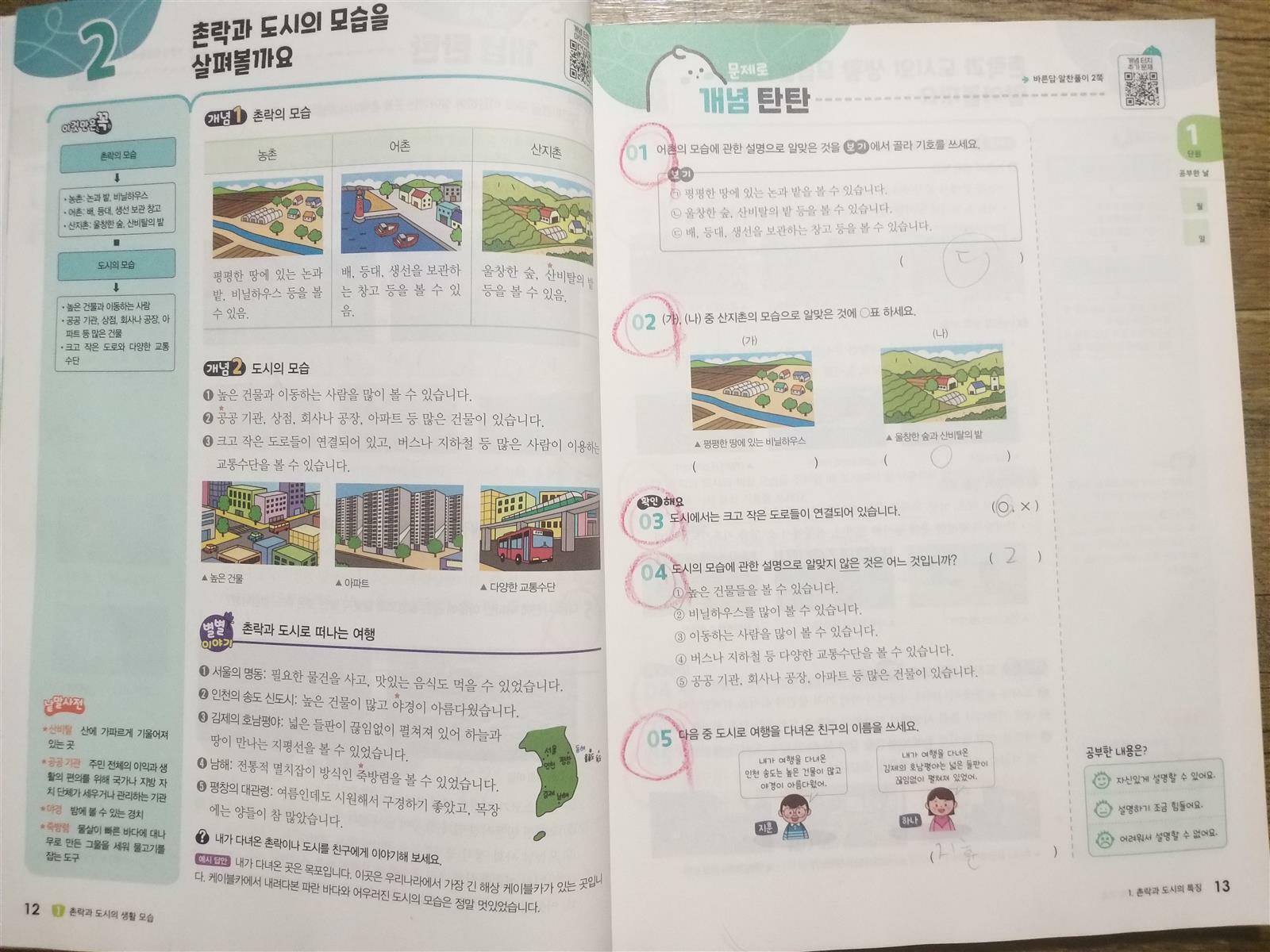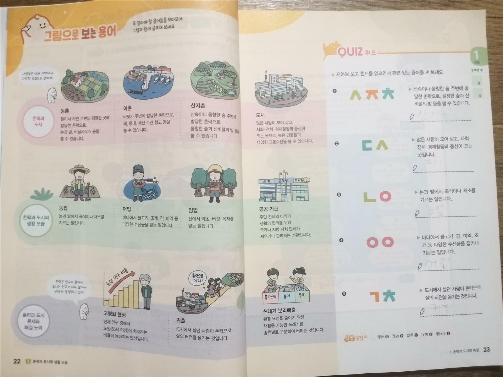 사회는 우리 생활모습을 배우는 과목이지요.. 교과서 어려운 내용과 알수없는 용어때문인지 초등4학년 아들은 사회과목을 어려워해요;; 그런 아들을 위해 초등사회문제집 교과서 길잡이 미래엔 초코사회를 준비해 보았어요~ ☆핵심개념을 비주얼로 이해하는 탄탄한 초코 ☆기본부터 응용까지 공부가 즐거운 달콤한 초코 ☆온오프학습 시스템으로 실력이 쌓이는 신나는 초코 초등 3학년부터 6학년까지 사회 한눈에 보기는 사회과목에 어떤 내용들을 공부하는지 한눈에 알아보기 좋게 되어 있어요~ 미래엔 초코사회 최고 특징 " 온라인 학습서비스" 큐알코드 클릭!! 개념터치마인드맵으로 교과서중요개념을 한눈에 정리하면서 개념터치 추가문제로 학습한 내용을 이해하고 있는지 문제로 다시 복습도 하면서 확인해볼수 있어요.. 또한 문제해설을 보면서 정답확인을 바로 할수 있지요~ 초등 4학년 2학기 사회는 우리지역의 다양한 모습을 배운답니다~ 1. 촌락과 도시의 생활모습 * 촌락과 도시의 특징 *함께 발전하는 촌락과 도시 2.필요한 것의 생산과 교환 * 경제활동과 현명한 선택 * 교류하며 발전하는 우리지역 3. 사회변화와 문화다양성 *사회 변화로 나타난 일상생활의 모습 *다양한 문화에 대한 모습 1단원 촌락과 도시생활모습부터 들어가봐요~ ●교과서쏙쏙 그림으로 어떤내용을 배우는지 한눈에 알수있어요. 단원을 공부하면 알수있는 내용을 미리 알려주어 궁금증을 유발시키네요~ ●문제로 개념탄탄 교과서 중요개념을 이미지와 표로 정리하여 쉽고 재미있게 사회기본기를 다질수 있어요. "이것만은 꼭으로" 다시 한번 개념을 복습해볼수도 있고 탐구해요, 낱말사전,별별이야기로 사회개념을 이해하는데 도움을 주고 있답니다. ●용어만 쏙쏙 어려운 사회용어를 그림으로 학습하며 확실하고 완벽하게 용어를 이해할수 있어요~ ●시험도 척척 다양한 유형의 문제를 풀어보고 문제해결력을 키우며 실력을 쌓을수 있어요~ ●교과서도 완벽 교과서 뚝딱뚝딱 정리하기와 딩동댕 단원마무리를 확인하고 내용을 완벽하게 정리할수 있어요 ●정답과 풀이 자세한 설명이 담겨진 정답과풀이는 아이가 모르는문제를 이해하기 쉽게 설명해줄수 있어 저에게도 도움을 많이 줘서 유용히 사용하고 있답니다~ 교과서 중심 초등사회문제집 미래엔 초코사회로 무더운 여름방학에 2학기사회를 재미있게 공부하고 있어요!!! 출판사로부터 도서를 제공받아 주관적으로 작성한 후기입니다 #초등사회문제집 #미래엔초코사회 #교과서길잡이 #초코사회 #온라인학습서비스 #초등사회문제집추천 #미래엔