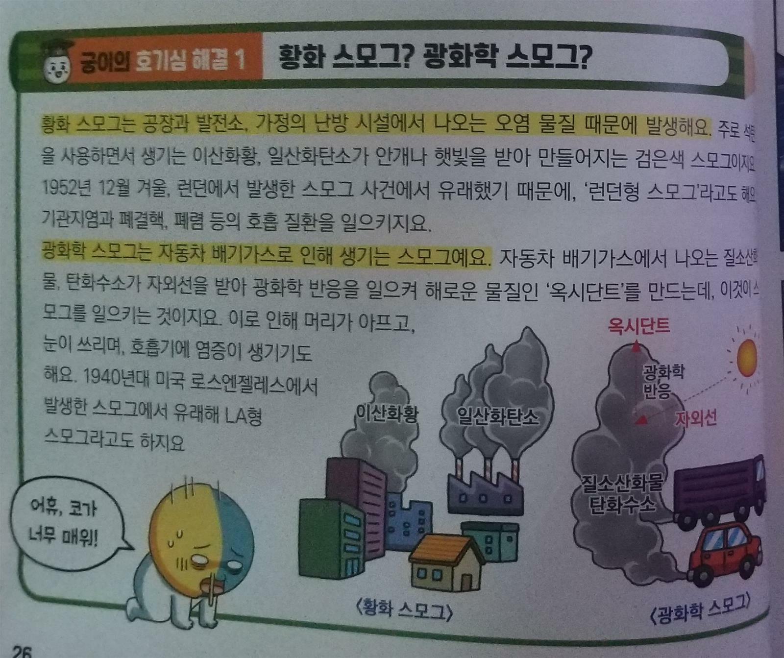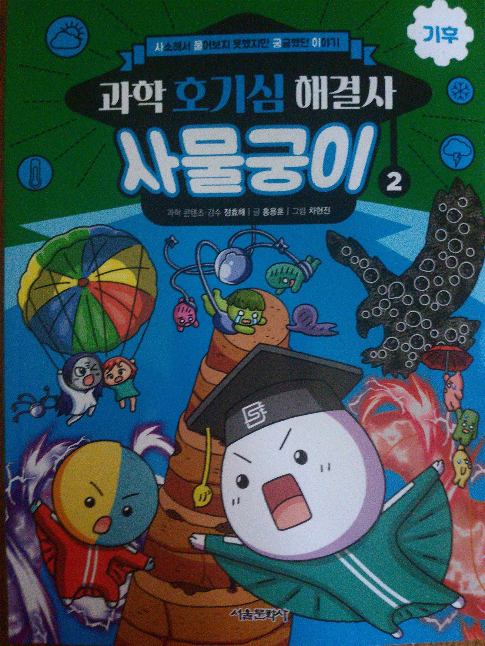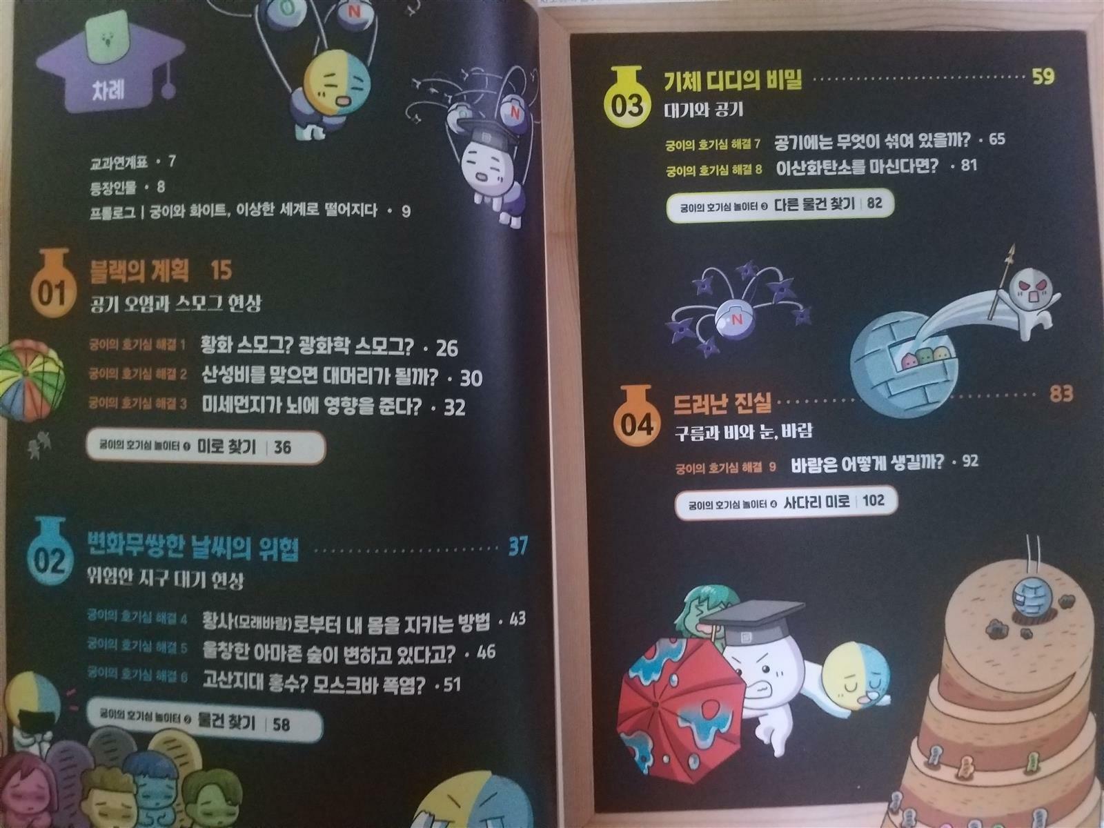 엄청난 토네이도 속으로 빨려들어간 궁이와 외계인 화이트디디는 이상한 세계로 떨어지고 그곳은 정체모를 검은 안개가 자욱한데.. 블랙디디는 호기심감옥 대기의 몸부림 방을 소개하면서 2052년 지구의 특별한 위력을 느껴보라고 하지요~ 검은 안개가 스모그란걸 알게된 궁이와 화이트디디 스모그란 인간이 만들어 낸 오염 물질이 공기중에 섞이면서 안개처럼 뿌옇게 보이는 현상으로 인체에도 안좋은... 산성비는 황산,질산등 산성오염 물질이 빗물에 녹아 산성을 나타내는비로 인체뿐아니라 동식물에게도 피해를 입히게 되지요.. 미세먼지또한 인지기능손상시키는데 영향을 주고 우울증의 위험도 높이는것 또한 알수있어요 환경을 미리미리 정화했어야했는데 발전만 가속화시킨다고 안좋은 오염물질을 계속 발생시켜서 미래의 지구가 아파하는거 같아요ㅜㅜ 궁이의 호기심해결로 교과과학연계된 내용으로 과학 호기심을 하나둘 해결하고 알려줘서 과학 배경지식을 학습만화로 쌓을수 있어 넘 좋으네요~ 물건찾기,다른물건찾기, 사다리미로 , 숨은그림찾기등 궁이의 호기심놀이터로 창의 융합사고력까지 키울수 있어 1석2조인듯!! 초등과학 선생님이 들려주는 교실밖 다양한 기후이야기를 자세히 설명해주고 있어요~ 학습만화로 본 내용을 한번더 되새기며 과학지식을 알아볼수 있어요~ 기후에 대해 사물궁이와 함께 재미있게 호기심해결하고 과학공부까지 할수있는 호기심 해결사 사물궁이 벌써부터 3권이 기다려집니다~^^ 출판사로부터 도서를 제공받아 주관적으로 작성한 후기입니다 #과학호기심해결사 #사물궁이2 #기후 #서울문화사 #사물궁이잡학지식 #초등과학학습만화 #과학교과연계
