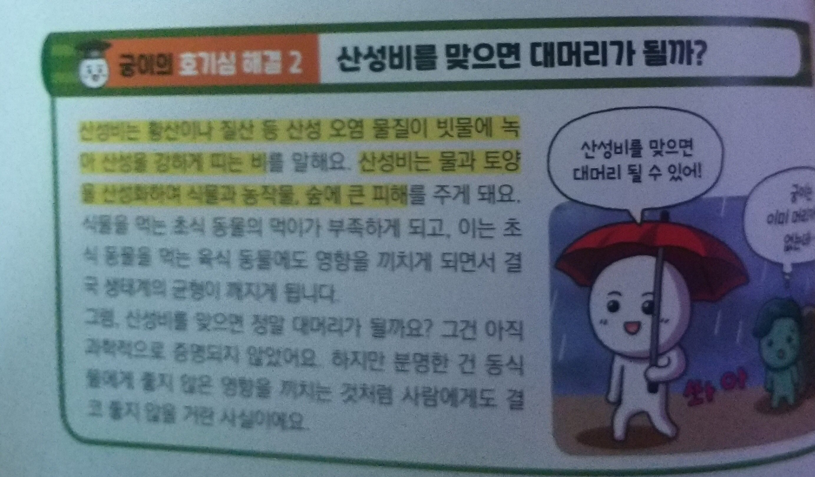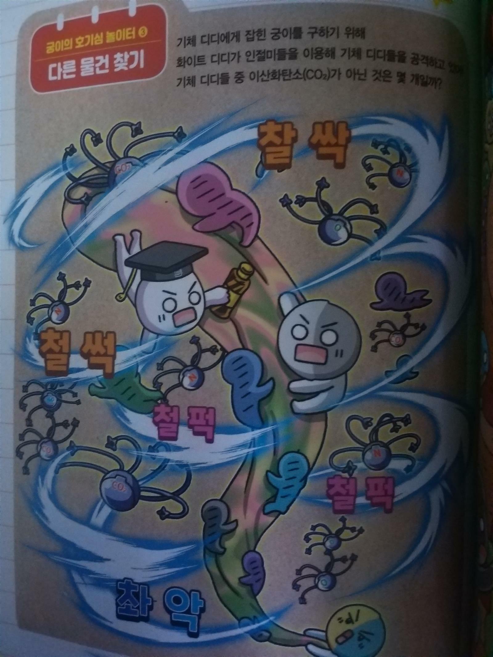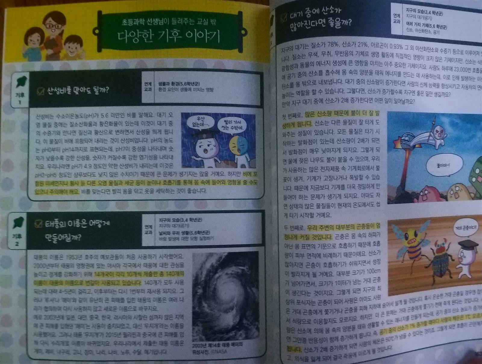 엄청난 토네이도 속으로 빨려들어간 궁이와 외계인 화이트디디는 이상한 세계로 떨어지고 그곳은 정체모를 검은 안개가 자욱한데.. 블랙디디는 호기심감옥 대기의 몸부림 방을 소개하면서 2052년 지구의 특별한 위력을 느껴보라고 하지요~ 검은 안개가 스모그란걸 알게된 궁이와 화이트디디 스모그란 인간이 만들어 낸 오염 물질이 공기중에 섞이면서 안개처럼 뿌옇게 보이는 현상으로 인체에도 안좋은... 산성비는 황산,질산등 산성오염 물질이 빗물에 녹아 산성을 나타내는비로 인체뿐아니라 동식물에게도 피해를 입히게 되지요.. 미세먼지또한 인지기능손상시키는데 영향을 주고 우울증의 위험도 높이는것 또한 알수있어요 환경을 미리미리 정화했어야했는데 발전만 가속화시킨다고 안좋은 오염물질을 계속 발생시켜서 미래의 지구가 아파하는거 같아요ㅜㅜ 궁이의 호기심해결로 교과과학연계된 내용으로 과학 호기심을 하나둘 해결하고 알려줘서 과학 배경지식을 학습만화로 쌓을수 있어 넘 좋으네요~ 물건찾기,다른물건찾기, 사다리미로 , 숨은그림찾기등 궁이의 호기심놀이터로 창의 융합사고력까지 키울수 있어 1석2조인듯!! 초등과학 선생님이 들려주는 교실밖 다양한 기후이야기를 자세히 설명해주고 있어요~ 학습만화로 본 내용을 한번더 되새기며 과학지식을 알아볼수 있어요~ 기후에 대해 사물궁이와 함께 재미있게 호기심해결하고 과학공부까지 할수있는 호기심 해결사 사물궁이 벌써부터 3권이 기다려집니다~^^ 출판사로부터 도서를 제공받아 주관적으로 작성한 후기입니다 #과학호기심해결사 #사물궁이2 #기후 #서울문화사 #사물궁이잡학지식 #초등과학학습만화 #과학교과연계