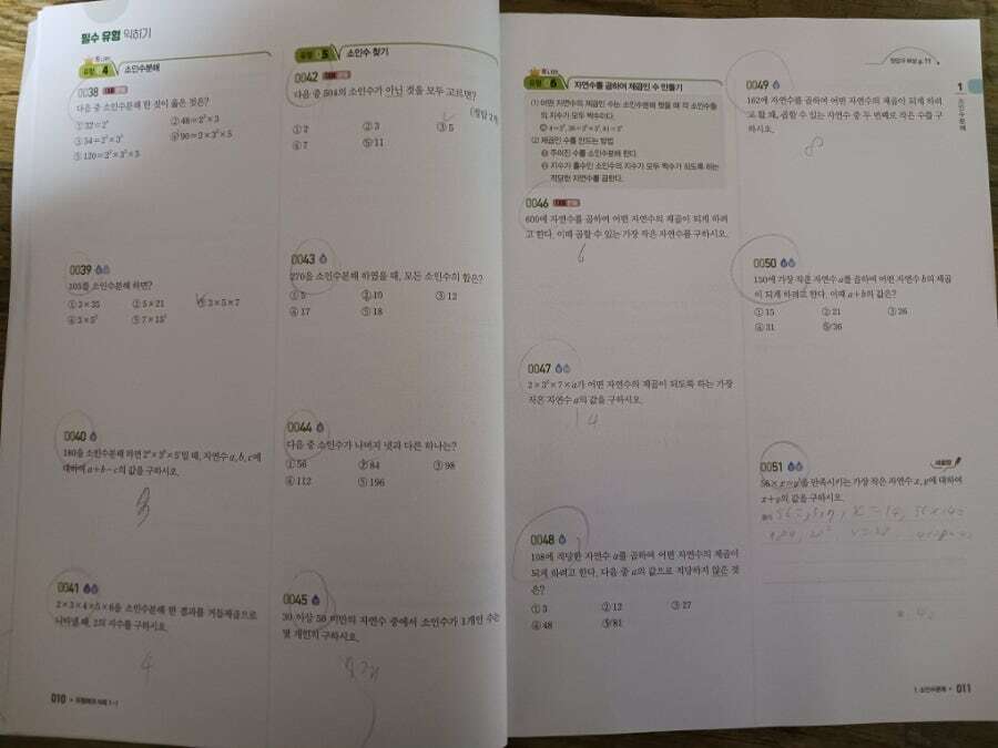 소인수분해, 정수와 유리수,문자의 사용과식,