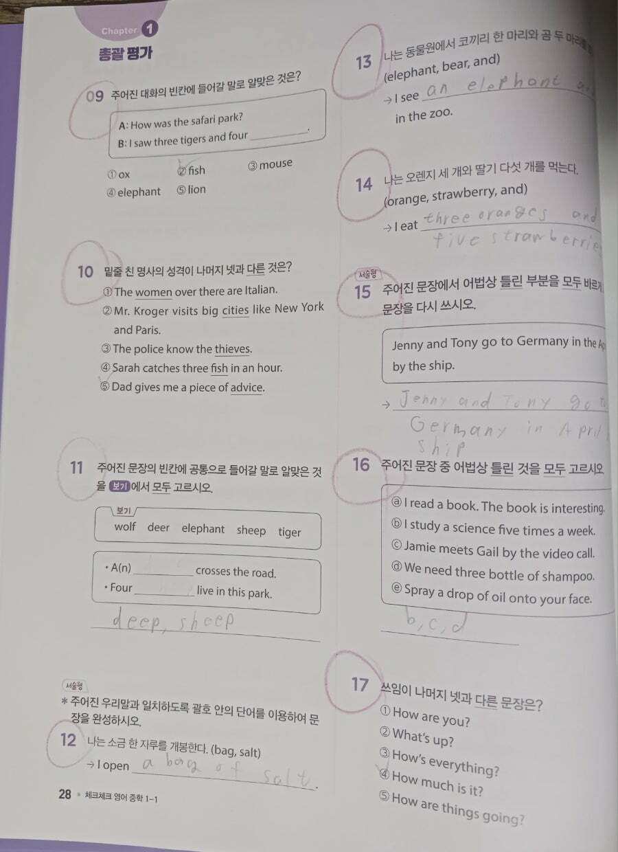 체크체크 중학 영어 1-1 (2026년용) - 2022 개정 교육과정, 어휘 문법 독해 듣기 의사소통 완벽한 통합 연계 학습 중등 체크체크 내신서 (2026년)