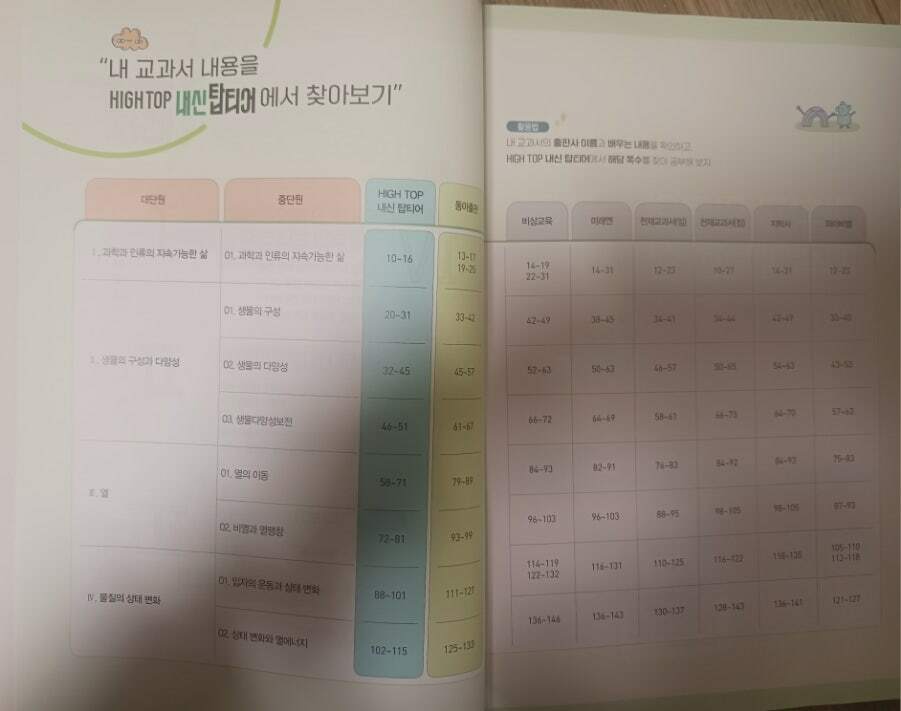출판사별로 내신탑티어에 있는  내용을 페이지까지 알려주고 있어 더 믿음이 가네요^^
