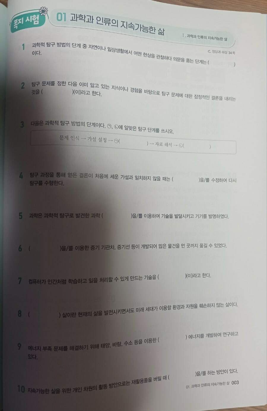 단원별 탐구영상, 보충 설명영상,문제풀이 영상과  쪽지시험 추가문제,  수행평가 예상문제까지  큐알코드를 클릭해