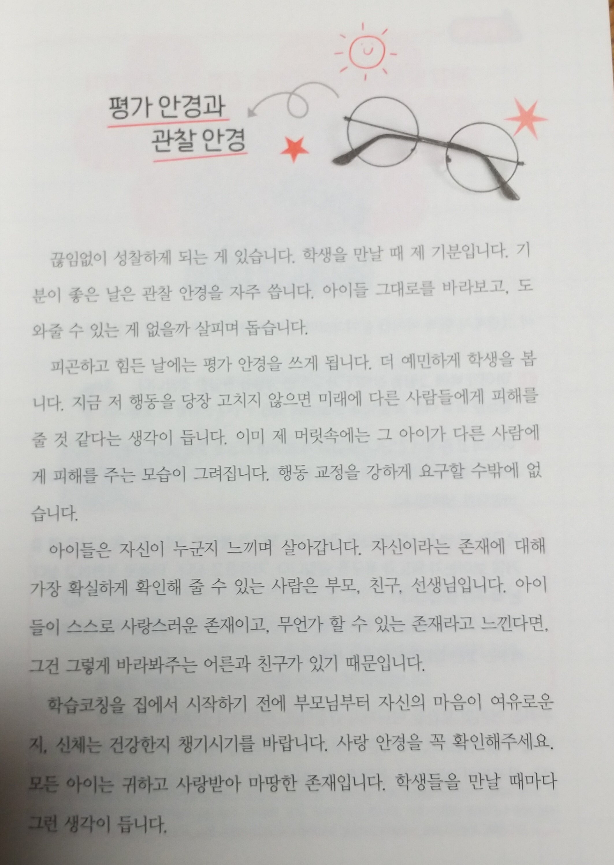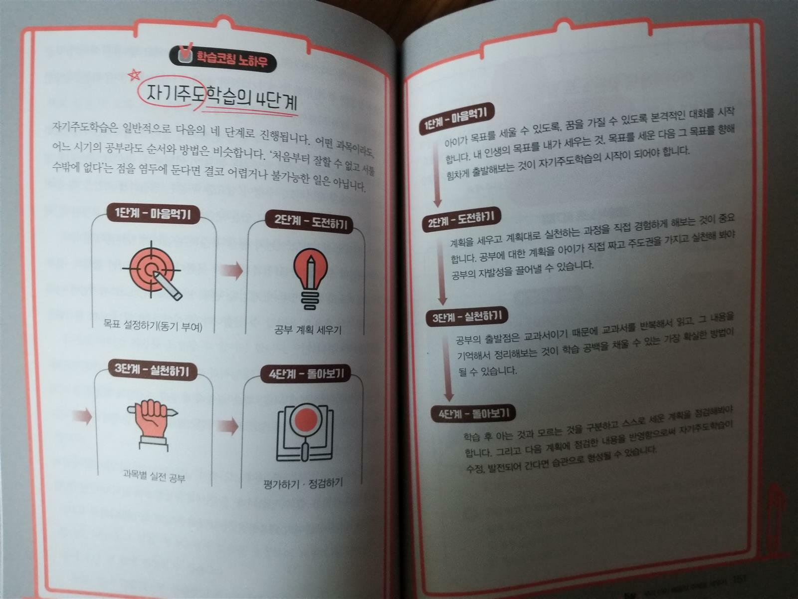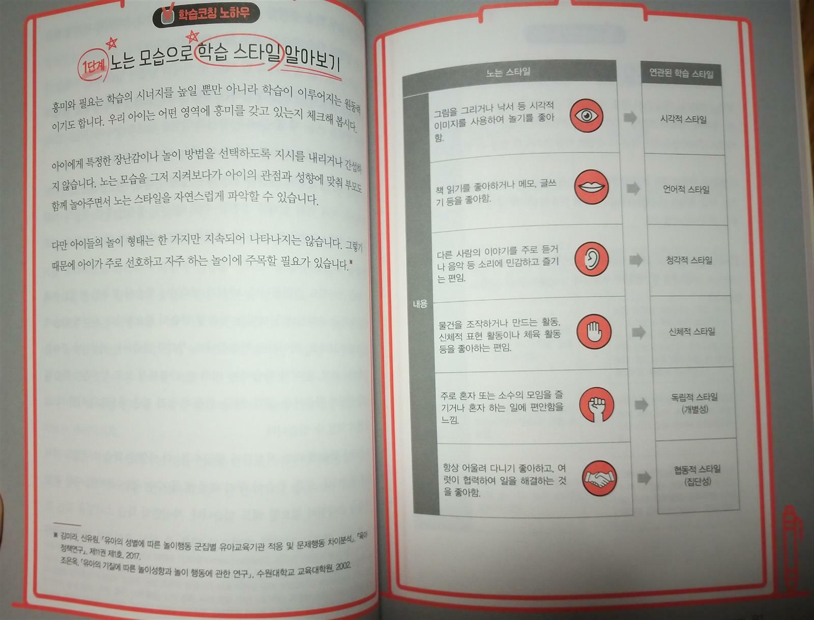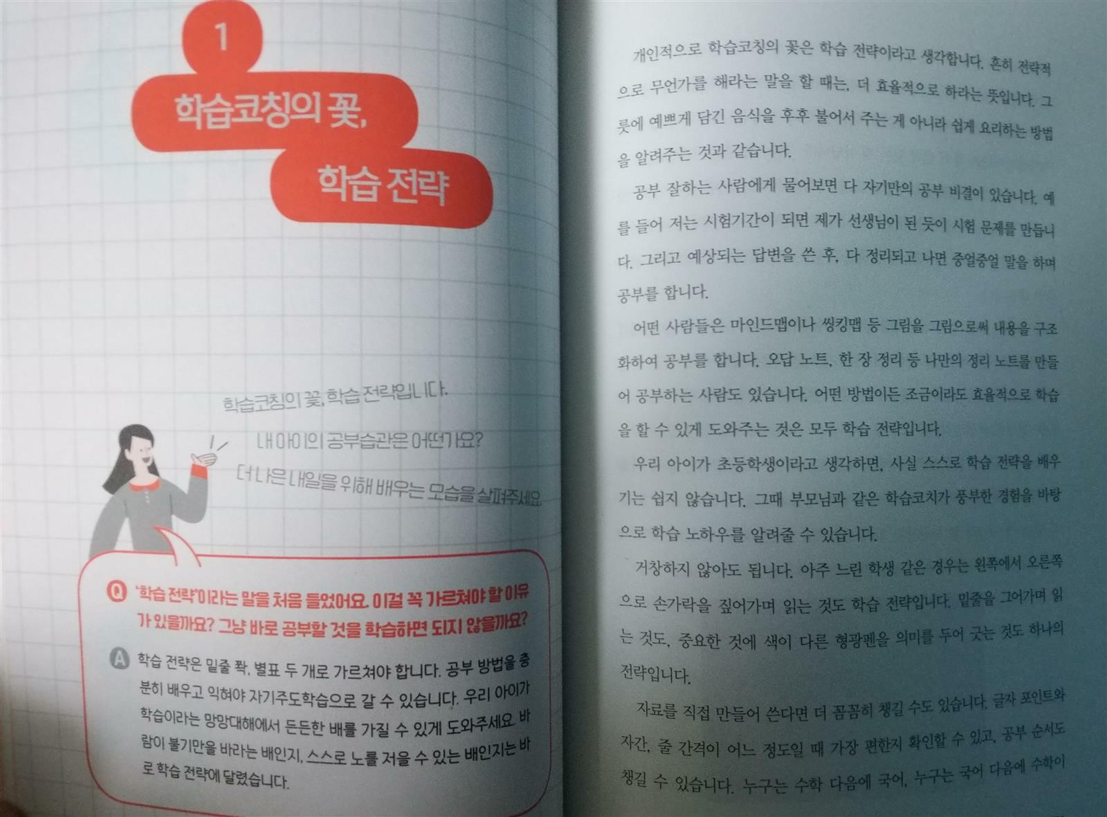 과정중심평가 학습코칭을 어떻게 해야하나 고민이었는데 좋은기회로 초등교사 4분이 쓴 초등 맞춤형 학습코칭을 만나 보았습니다~ 우리아이 학습코칭은 눈높이부터!! 문구부터 반성하게 됩니다~ 우리아이 관찰과 기대로 바라보기 학습코칭의 시작은 안경 제대로 쓰기래요~ 하나는 평가안경 또하나는 관찰안경 2가지 랍니다.. 우리아이에게 평가안경을 쓰고 바라본게아닌지 반성도 해보고 관찰안경으로 아이가 어떤생각을 하고있는지 바라보고 사랑안경까지 껴서 지켜봐야겠어요~ 학습코칭을 시작하기전에 서로 마음을 맞추는과정이 중요하대요~ 친한사이일수록 더 그렇다하니 아이의견을 존중해주고 얘기도 들어보며 시작해야겠다는 생각이 듭니다~ 시험결과만 생각하는 엄마 100점맞을수 있었는데 이건 왜 틀렸어 ? 제 이야기네요ㅜㅡㅜ 반성합니다~ 아이가 열심히 공부한건 생각안하고.. 열심히 공부했는데 아쉽겠다는 위로가 먼저인데 말이죠.. 결과중심이 아닌 과정 중심평가로 우리아이를 바라보는걸 실천해봐야겠어요.. 학습코칭의 꽃은 학습전략이래요^^ 공부를 잘하는사람은 자기만의 공부비결이 있고 아이에게 맞는 공부방법을 찾아주는게 좋다고 해요~요즘 핫한 마인드맵,씽킹맵, 오답노트 활용해서 공부하는 것또한 효율적으로 학습을 할수 있게 도와주는 것또한 학습전략이래요. 초등학생들은 스스로 학습전략을 배우는것은 쉽지 않으므로 부모님이나 선생님같은 학습코치가 풍부한경험으로 학습노하우를 알려주고 아이가 공부방법을 충분히 배워서 자기주도학습을 할수있도록 도와줘야한다고 하네요~ 또한 우리아이 학습스타일은 노는모습이나 학습스타일별로 학습통로를 알아볼수있는게 신기했어요~~ 요즘 문해력 문해력하는데~ 아이가 수업중에는 잘따라오는데 혼자 문제를 풀게 되면 잘 해결하지 못하는 것은 읽는 다음 해석하는 문해력이 부족해서 그런거래요.. 문해력을 길러주기 위해서는 읽기, 쓰기,말하기학습전략이 필요하고 아이만의 언어로표현하게끔 할수 있도록 도와줘야 겠어요~ 자기주도학습은 학습자 스스로 전과정을 결정하고 수행하는 학습하는 형태로학습의 참여여부에서부터 목표설정및 교육 프로그램의 선정과 교육평가에 이르기까지 전과정을 학습자가 선택하는 거래요^^ ■자기주도 학습의 4단계■ 1단계 - 마음먹기 (목표설정, 동기부여) 아이가 목표를 세울수 있도록 대화를 해보고 목표를 정해 출발하기 2단계 - 도전하기 ( 공부계획세우기) 계획을 세우고 계획대로 실천하는 과정을 직접 경험하는게 중요하대요 3단계 - 실천하기 ( 과목별 실전공부) 공부출발점은 교과서지요 교과서를 반복해서 읽고 정리하는 습관이 가장확실한 방법이래요~ 4단계- 돌아보기 ( 평가 ,점검하기) 학습후 아는것과 모르는것을 구분하고 스스로 세운 계획을 점검해 수정 보완하는과정에서 더나은 자기주도학습습관으로 발전할수 있다고 하네요~ 우리아이스스로 배움의 주체가 될수있도록 자기주도학습능력을 키워나가봐야겠어요~ 공부소화력?? 처음 듣는말이어서 무엇인가 했었지요.. 문제집말고 아이스스로 공부할수있는 다른방법은 공부 소화력을키워주는 거래요.. 스스로 배운 내용을 정리할수 있는 소화과정이 중요하다고 합니다^^ 학교 담임선생님께서 알려주신 코넬식 노트필기법 핵심어,핵심내용 배운 내용을 노트에정리하는거지요~ 마인드맵이나 씽킹맵등 아이만의 언어로 배운내용을 기억하기 쉽게 정리할수있는 습관을 키워나가봐야겠어요. 우리아이 학습코칭 아이에게 관찰안경을 쓰고 사랑으로 부터 시작해봐야겠습니다^^ 출판사로부터 도서를 제공받아 주관적으로 작성한후기입니다 #초등맞춤형학습코칭 #슬기로운초등생활 #초등아이행복성장길라잡이 #우리아이자신감찾기 #관찰안경 #과정중심평가 #자기주도학습 #학습전략 #학습코칭 #문해력 #학습소화력 #도서출판성안당