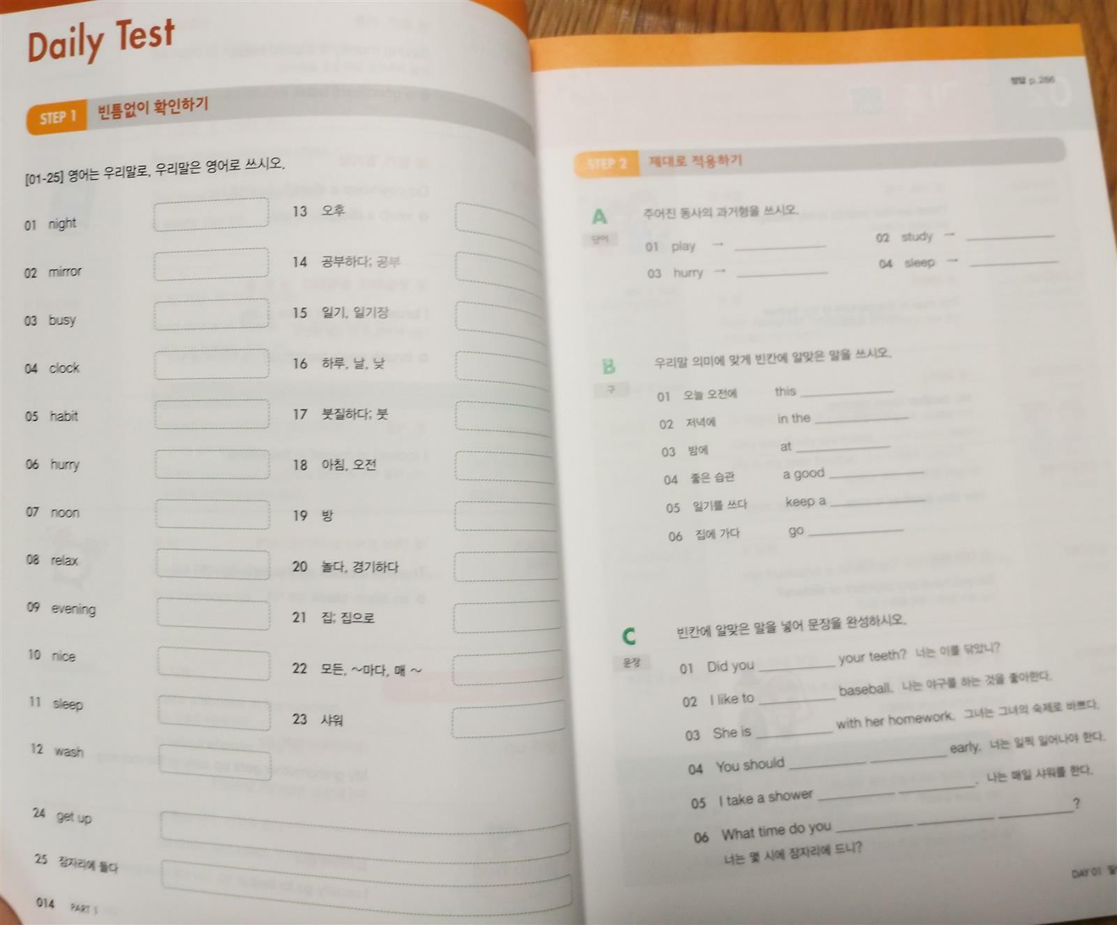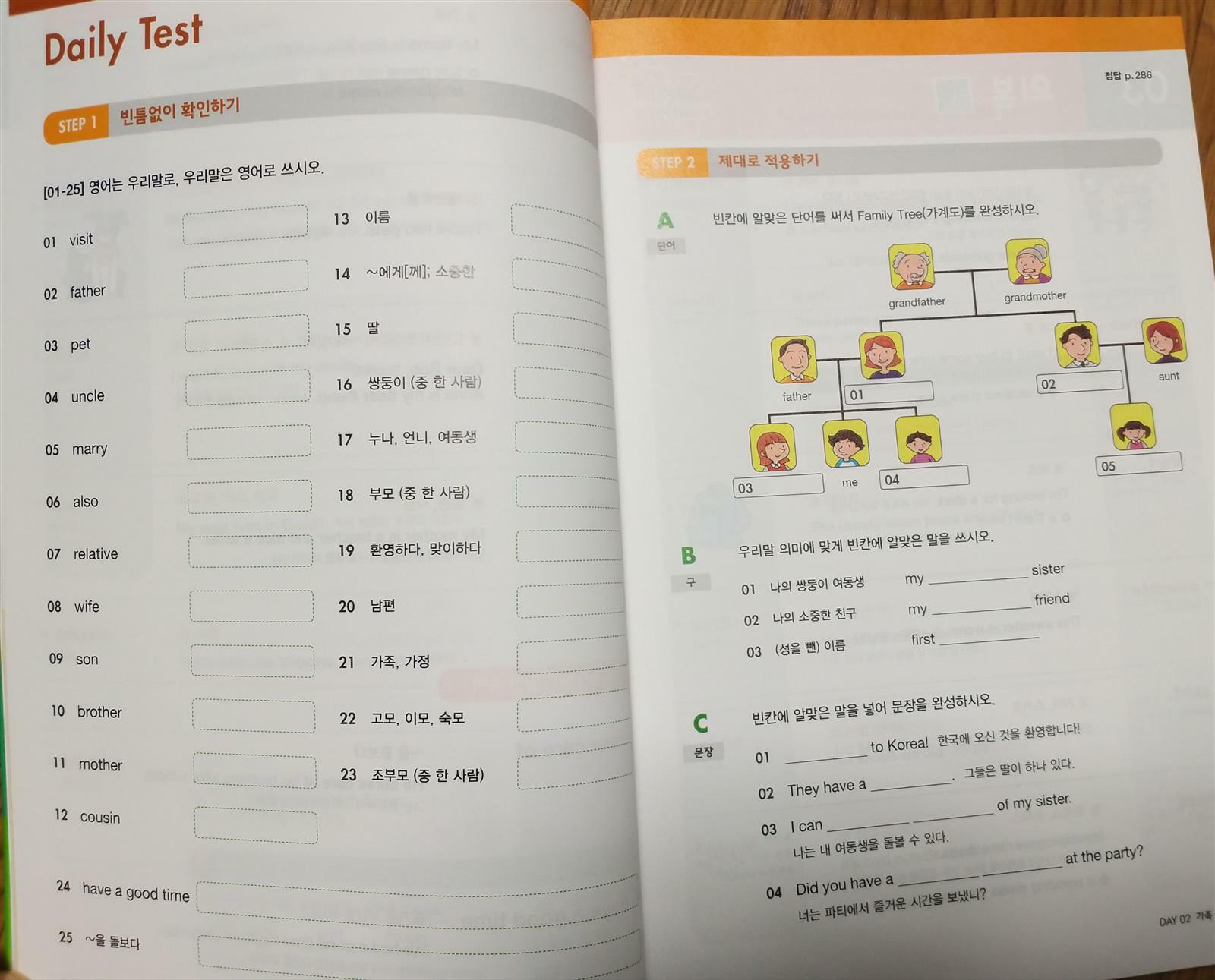 동아출판 시험에 강해지는 보카클리어 중학 기본편은 Part 1~ PART 8로 나누어 40개 주제구성이 세분화되어 있고 하루 25개 40일간 1000개의 영단어를 공부할수있어요^^ 책앞부분 ■큐알코드클릭!! 영어발음 어려워해도 걱정없어요~ 영단어 ,영단어 뜻, 영단어 예문을 원어민선생님의 발음으로 듣고 공부할수 있답니다^^ ■어휘력 업그레이드 어휘력을 향상시킬수 있는 유의어 ,반의어, 단어 배경지식까지 함께 공부할수 있어요~ 시험 point도 한눈에 콕!! 찍어줘서 공부하기 좋게되어 있네요~ 교과서 필수암기숙어도 예문과함께 공부해볼수있어요~ ■Daily Test 배운 영단어를 잘 기억하고 잘 알고있는지 1단계, 2단계로 테스트도 해볼수 있어요~ 5개의 주제로 5일간 영단어를 배운후 내신대비 어휘Test로 다시 복습도 해볼수 있답니다~~~ 책뒤쪽에는 휴대용 미니단어장이 부록으로 붙어져 있어요^^ 뜯어서 어딜 갈때 외투에 가지고 다니면서 영단어 공부하기 좋을꺼같아요~~ 이번 겨울방학 동아 보카클리어 중학기본편으로 영단어공부 열심히 해보겠습니다~^^ 출판사로부터 도서를 제공받아 주관적으로 작성한 후기입니다~ #동아출판 #보카클리어중학기본편 #보카클리어 #하루25개영단어 #1000개영단어공부 #시험에강해지는영단어책 #암기고래법