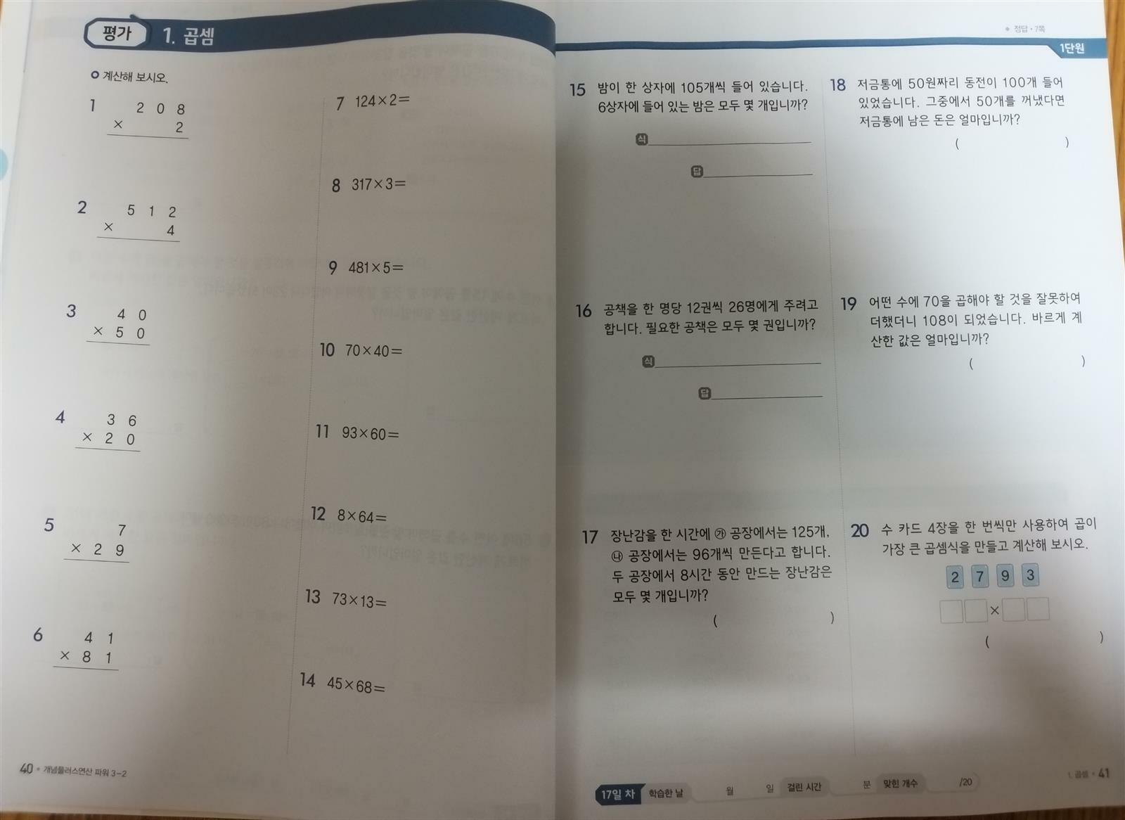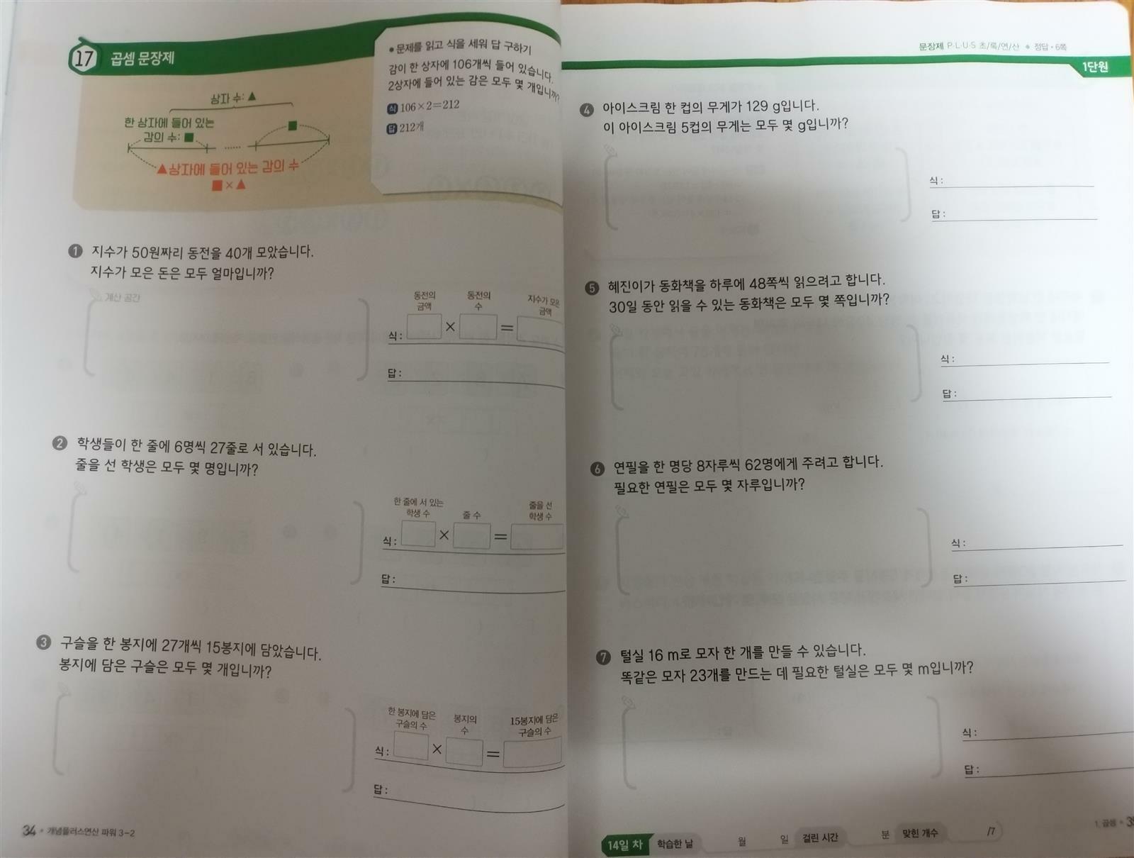 비상교육 초등연산문제집 개념 연산 3-2 입니다. 첫문구 "개념이 잡혀야 연산이 빨라진다"가 눈에 들어오네요~ 기초력완성 개념기억력강화 연산능력강화 여름방학이 끝나가는 시점에서 수학공부도 해야하는데 기본인 2학기 연산공부도 해보아야겠지요~ 3학년 2학기에는 1. 곱셈 2. 나눗셈 3.원 4.분수 5. 들이와무게 6.자료와 정리 6단원을 배우네요~ 메인북부터 공부해봅니다~ ●1단계 개념 드릴 기억에 오래 남는 한컷개념과 계산력강화를 위한 드릴문제 4쪽으로 수와 연산을 익힐수 있어요~ ●2단계 개념 익힘 기억에 오래남는 한컷 개념과 기초개념강화를 위한 익힘문제 2쪽으로 도형을 익혀요 보통 초등연산문제집에서는 도형파트는 없어서 따로 도형관련문제집을 사서 풀려야하는데 비상교육 개념 연산에는 도형단원이 있어서 깜짝 놀랐어요.. ●3단계 적용 다양한유형의 연산문제에 적용 능력을 키워요 ●4단계 특강 비법강의로 빠르고 정확한 연산력을 강화시킬수 있어요~ ●5단계 평가 단원별로 연산력을 평가할수 있어요~ 평가후 부족한 연산력은 클리닉북에서 보완할수 있답니다~ 비상교육에는 초등 연산문제집이 하나가 아니더라고요~ 또 하나의 초등연산문제집을 만나 보았어요~ 비상교육 문장제까지 잡는 응용연산 개념 연산 파워 3-2 ■1단계 기초 드릴 정확성과 속도를 잡는 유형 보통 초등연산문제집처럼 드릴유형이지요 ■2단계 스킬 업 연산 감각을 올리는 응용 유형 기본연산에다 응용유형까지!! 연산응 용능력을 키우는데 넘 좋은거 같아요~ ■3단계 문장제 플러스 문제해결력을 키우는 연산 문장제 유형 보통 수학문장제 문제집을 따로 사서 풀리곤 하는데 교과관련내용이 포함되어있어 개념 연산파워 한권으로 연산에 문장제를 공부할수 있어 1석 2조인듯 합니다~ ■4단계 평가 단원별 응용 연산력 평가 배운 연산내용을 잘이해했는지 평가도 해볼수 있답니다~ 비상교육 개념 연산, 비상교육 개념 연산파워 두권다 교과연산이라 초등수학문제집과 병행하면서 공부하면 더 좋을꺼 같고 저는 응용문제에다 문장제 문제까지 있는 비상교육 개념 연산 파워가 조금더 눈에 들어왔어요~ 아이에게 맞는거로 선택하시면 될꺼 같아요~ 이번 2학기 연산문제집은 비상교육개념 연산과 비상교육 개념 연산파워를 추천드려봅니다~ 해당 컨텐츠는 비상교육으로부터 교재를 받은후 주관적인 입장에서 작성하였습니다 #개념연산 #개념연산파워 #초등수학 #초등연산 #수학공부 #초등수학문제집 #연산문제집 #연산공부 #비상교육 #초등연산문제집