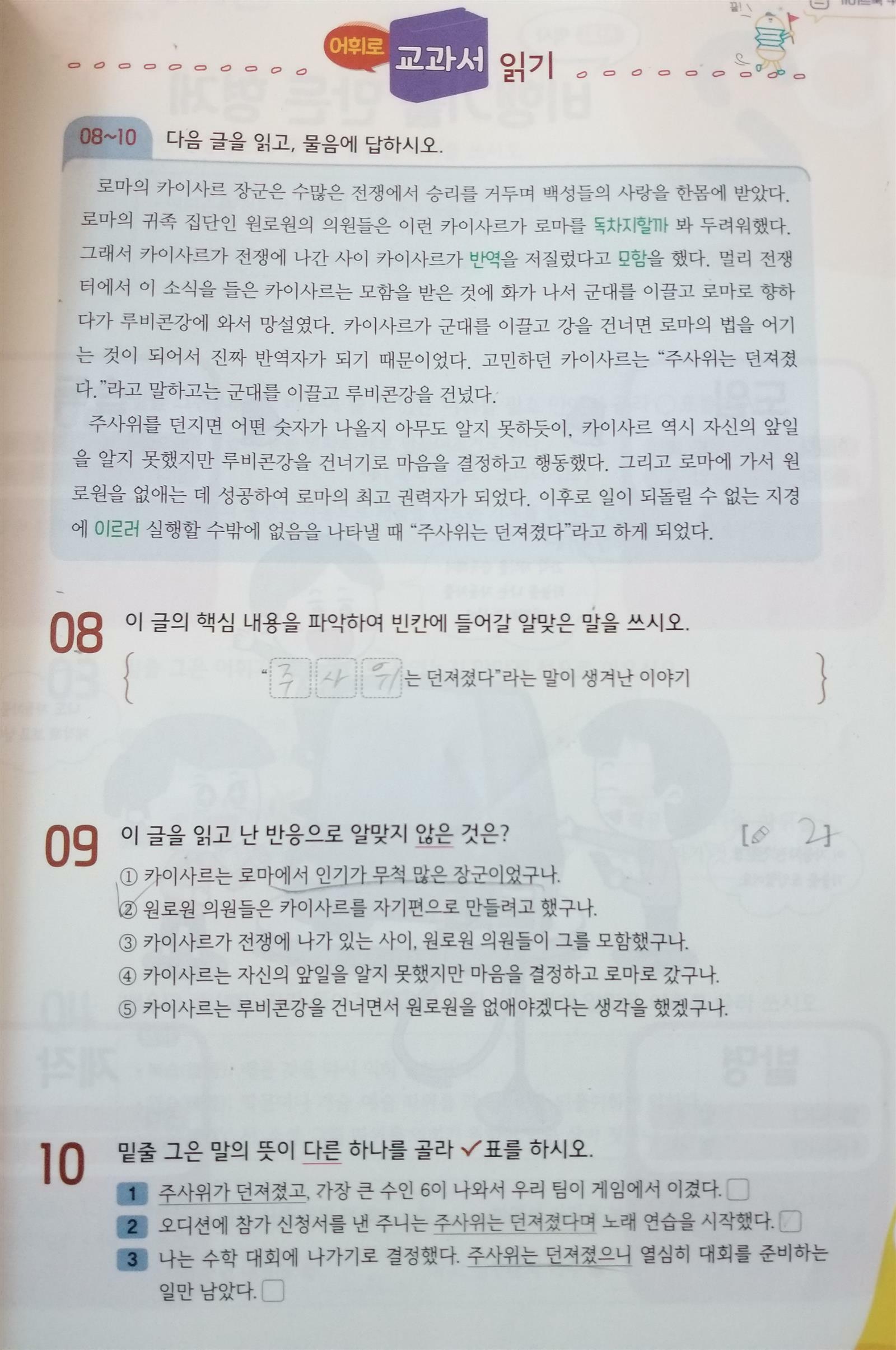 1일차는 국어읽기 주사위는 던져졌다입니다~