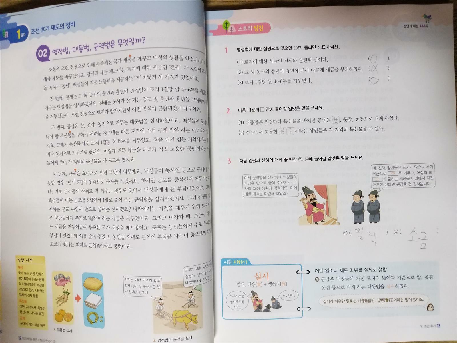 공납을 쌀, 옷감,동전으로 내게 하는것이래요..