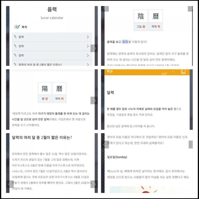 달력에 나오는 양력과음력에 대해도 공부할수있어요~