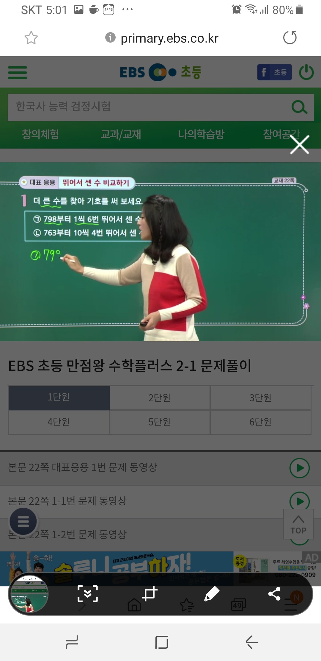 동영상을 보고 백점쌤 강의를 듣고