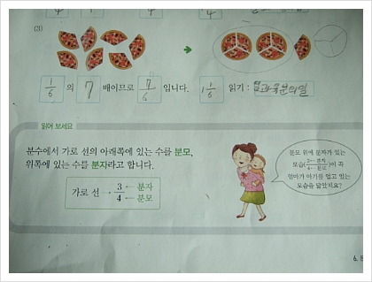 엄마가 아기를 업고 있다고 생각하라는 설명을 보면서 아래가 분모, 윗쪽이 분자 이렇게