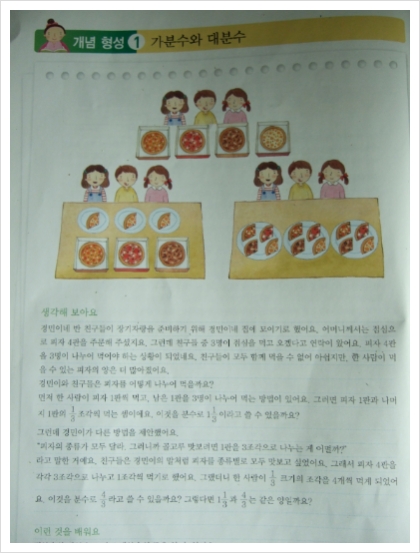 첫장을 넘기면 개념 형성을 하는 부분으로 가분수와 대분수의 개념 설명이 나옵니다.