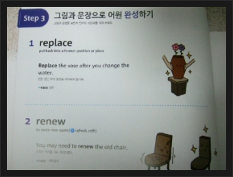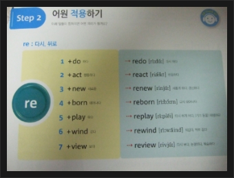 이런 형식으로 각 단원들이 설명되어지고 이순서대로 하다보면 어느새 영단어들의 조합이 이해되어