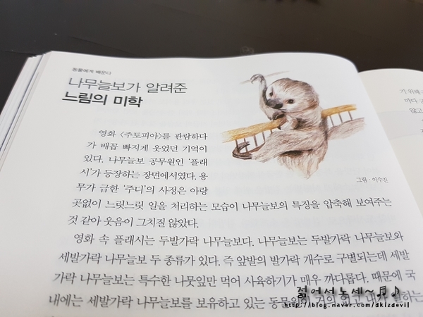 나의 일상에서 느림의 미학이란 단 1도 없다. 동시에 두가지 이상의 일을 해야 하고 되도록 빨리 실수없이 해야한다. 꾸물대는 사람을 보면 (특히 일할 때) 참을 수가 없다. 줄이 길게 늘어선 곳은 아무리 배가 고파도, 아무리 필요한 곳이라도 과감히 뿌리친다. 이런 나에게 나무늘보가 살아가는 방식은 꼭 빨리 하는 것만이 정답이 아니라고 알려주었다.