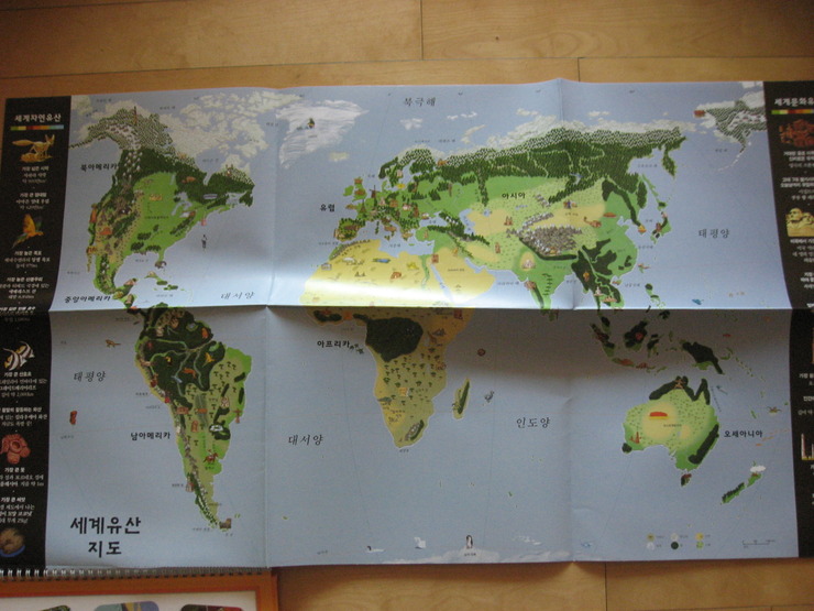 잘 알려진 프랑스의 에펠탑이나 그리스의 신전 같은 문화 유산 말고도 자연환경에 대해 많이 다루어져 있었습니다.북유럽의 피오르같은 자연환경이나 자연 조건에 따른 (바다보다 낮은 땅인 네델란드는 바닷물을 빼기 위해 풍차를 만듦)나라별 조형물등이 눈에 띄더라구요.세계사와 함께하는 유물등이 가장 많은듯합니다.