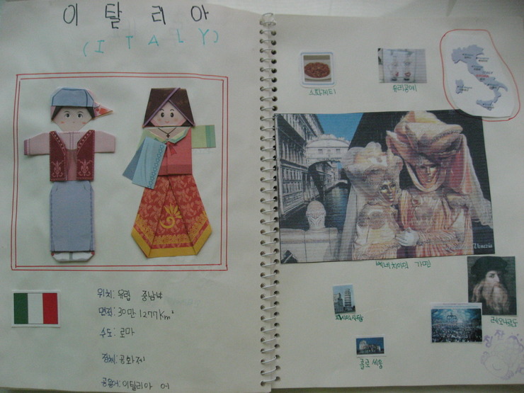 독후활동으로 각 나라별 전통 의상 접기를 해보고 그 나라의 유적도 인터넷으로 찾아 스크랩 해보고 각 나라의 인물들도 찾아보며 지구촌으로 눈을 넓히는 아이들의 모습을 발견할 수 있엇습니다.