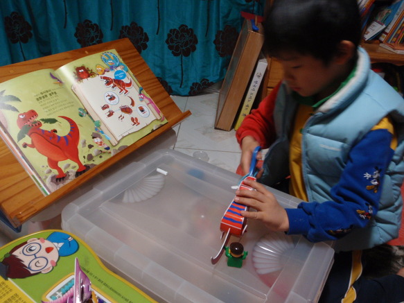 처음엔 직접 동이처럼 두리번 거리더니 공룡보다 동이가 작아야한다며 레고에게 동이역할을 맡겼어요^^