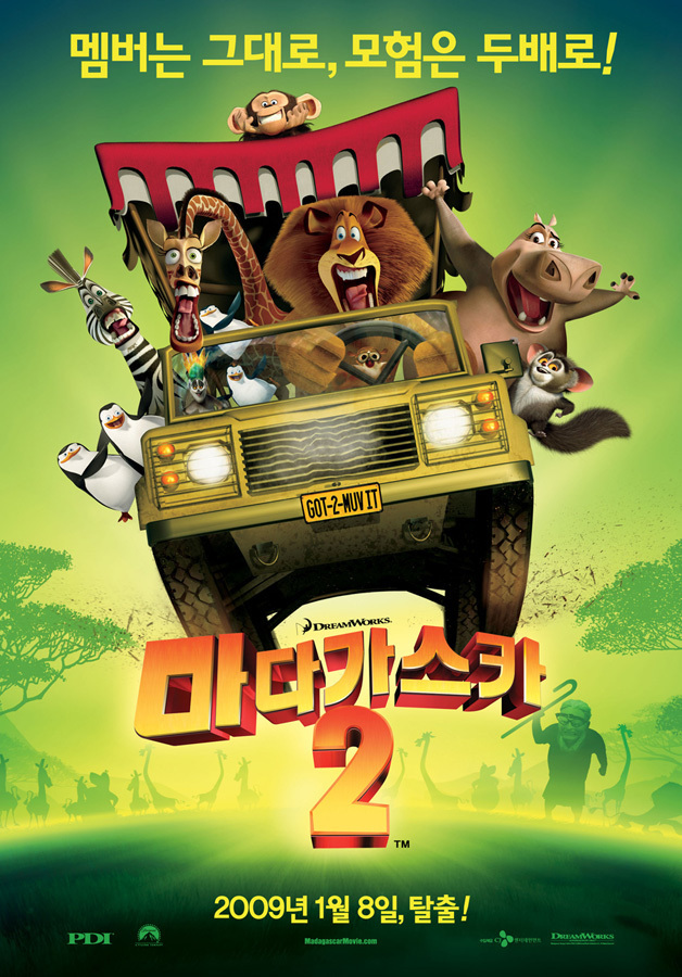 감독;에릭 다넬,톰 맥그라스 주연;벤 스틸러,크리스 록 지난 2005년 7월 국내에서도 개봉했었던 드림웍스 애니메이션 <마다가스카>의 속편으로써, 우리나라에서는 2009년 1월 초 개봉한 영화 <마다가스카 2> 이 영화를 이제서야 보게 되었고 부족할런지 모르지만 이 영화를 본 나의 느낌을 얘기해보고자 한다. <마다가스카 2;나름 소소한 점에선 재미있긴 하지만 전체적으로 봤을땐 큰 재미는 찾을수 없었다> 드림웍스가 지난 2008년 내놓은 애니메이션으로써, 국내에서는 2009년 1월 초 개봉하였지만 그 당시 1편을 안 봐서 2편 역시 건너뛰었던 애니메이션 <마다가스카 2> 80여분 정도 하는 이 애니메이션을 보면서 느낄수 있는 것은 나름 소소한 캐릭터들이 보여주는 행동에서 웃음과 재미를 느낄수 있긴 했지만 전체적으로 보았을땐 1편과 별 차이가 없다는 것을 잘 보여준 속편이 아닐까라는 생각을 하게 해준다.. 역시 이 영화에서 눈에 띄는 캐릭터를 얘기해보자면 단연 엽기 할매가 아닐까라는 생각을 해본다.. 짧지만 영화 속에서 보여주는 그 분의 존재감은 어떻게 보면 약간 진부하게 갈수도 있는 이 애니메이션 영화에 나름 청량제 같은 역할을 주었다고 할수 있었고.. 거기에 1편에서 나름 활약해주었던 펭귄 역시 이번 편에서 나름 활약을 해주었다고 할수 있었다.. 또한 1편과는 달라질려고 한 건지 몰라도 '라이온 킹'의 느낌을 후반부 에 보여주는데.. 어떻게 보면 보는 사람에 따라선 아쉬움으로 남을수도 있겠다는 생각 역시 해보게 되었고... 아무튼 나름 소소한 재미는 있긴 했지만 그렇게 큰 재미는 주지 못했다고 할수 있는 드림웍스의 애니메이션 <마다가스카 2>를 본 나의 느낌이었다