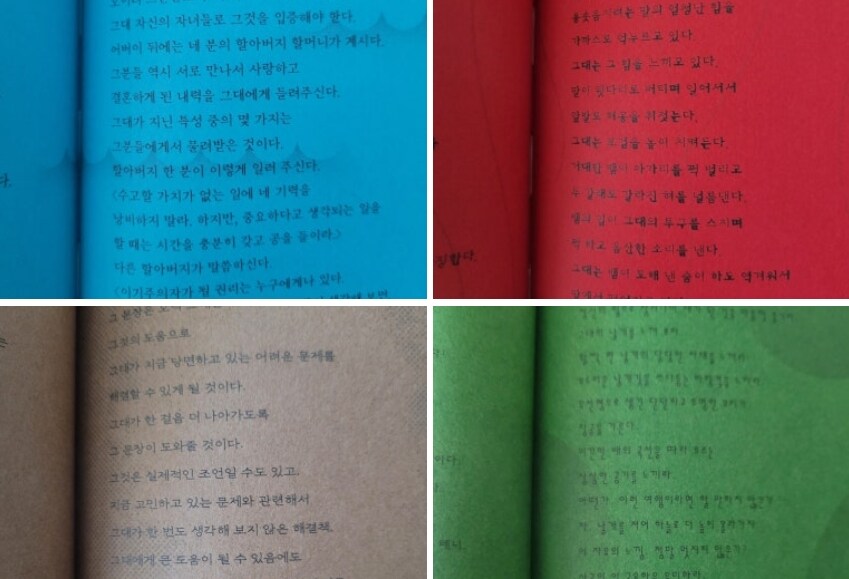 작가는 이 책을 읽는 독자에게 어떤 의미를 부여한다. 독자가 이 책을 읽는 것으로 끝나는 것이 아니라 독자가 이 이야기의 마지막 저자가 되어 자신의 삶을 스스로 읽고 해석해야 할 하나의 이야기로 만들어갈 의미를 부여한다. 사람이 책을 읽는 행위는 단순히 읽는 것으로 끝나는 것이 아니라 서로를 살리고 있음을 조용히 전해주는 한잔의 에너지같은 책이었다.
