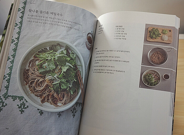 주말 동안 레시피를 따라 한번 시도해 본 음식도 있다. 마침 참나물과 새로 짠 들기름이 있어 점심으로 참나물 들기름 메밀국수를 한번 시도 해 보았다.