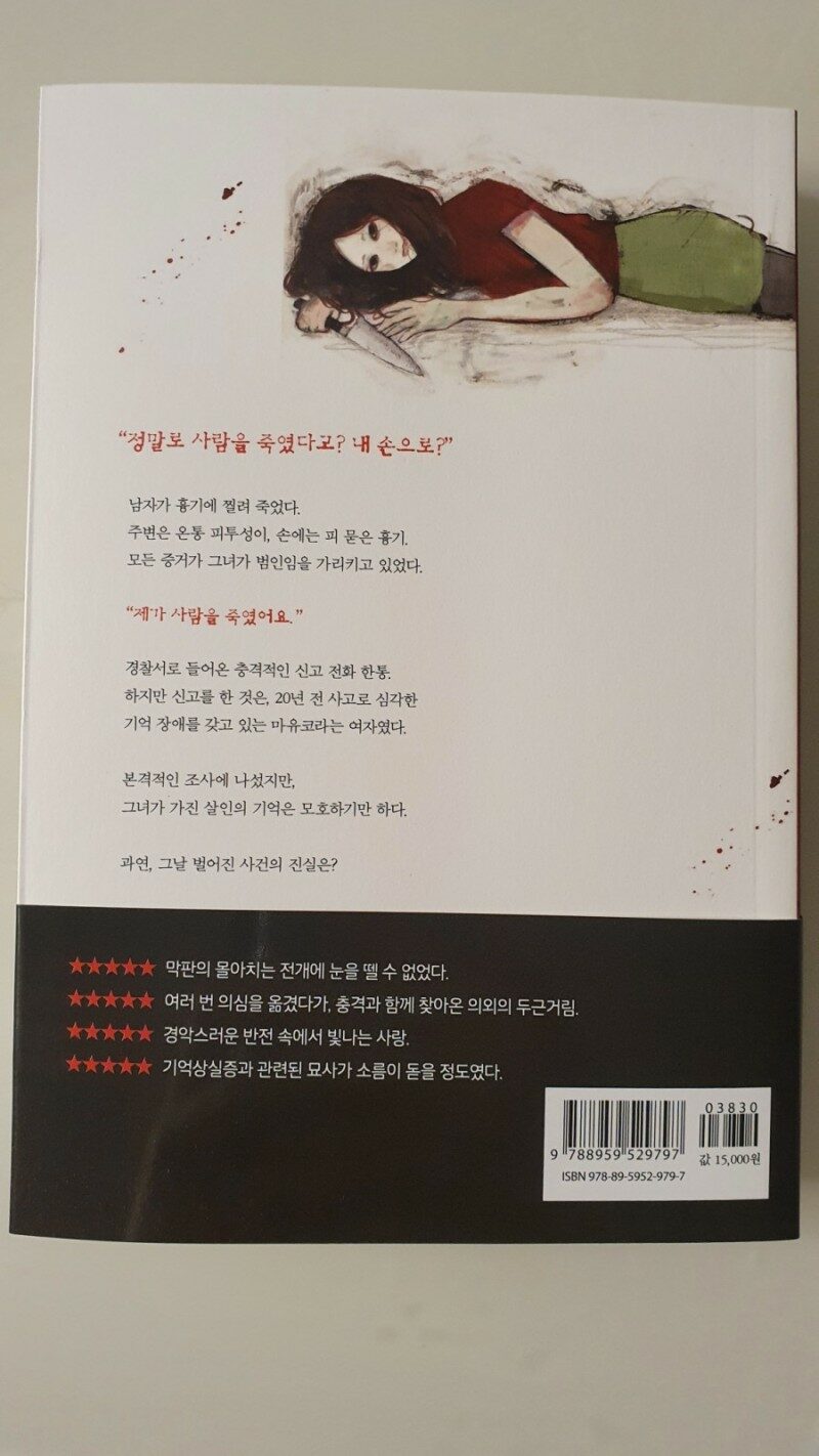 다행히 소설은 공포 장르가 아니고 미스터리 스릴러지만 표지처럼 무서운 전개는 펼쳐지지 않는다.