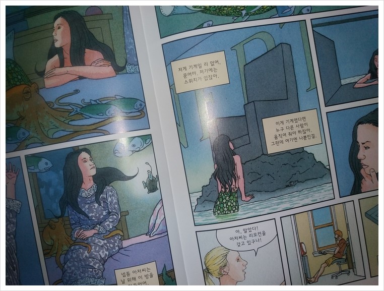 초등학생인 아이도, 대학생인 언니도, 40대인 엄마도 모두 돌아가면서 읽어도 너무 재미났던 '인어소녀'. 가족 모두에게 이렇게 만족을 주는 책은 아마도 이번이 처음이었던것 같다.