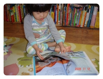 잠들기 전에 엄마가 동화책을 읽어줍니다.