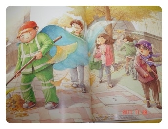 거리청소를하고~규호네아빠는 귀여운 토끼신발과 양모자쓰고~교통경찰인 미주네 아빠도 요술지팡이로 ~일을하시네요.