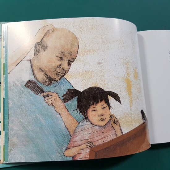 할아버지가 민들레의 머리를 빗어주는데 자꾸 짝짝이가 되어 민들레가 눈물을 흘리는 장면이 나와요.