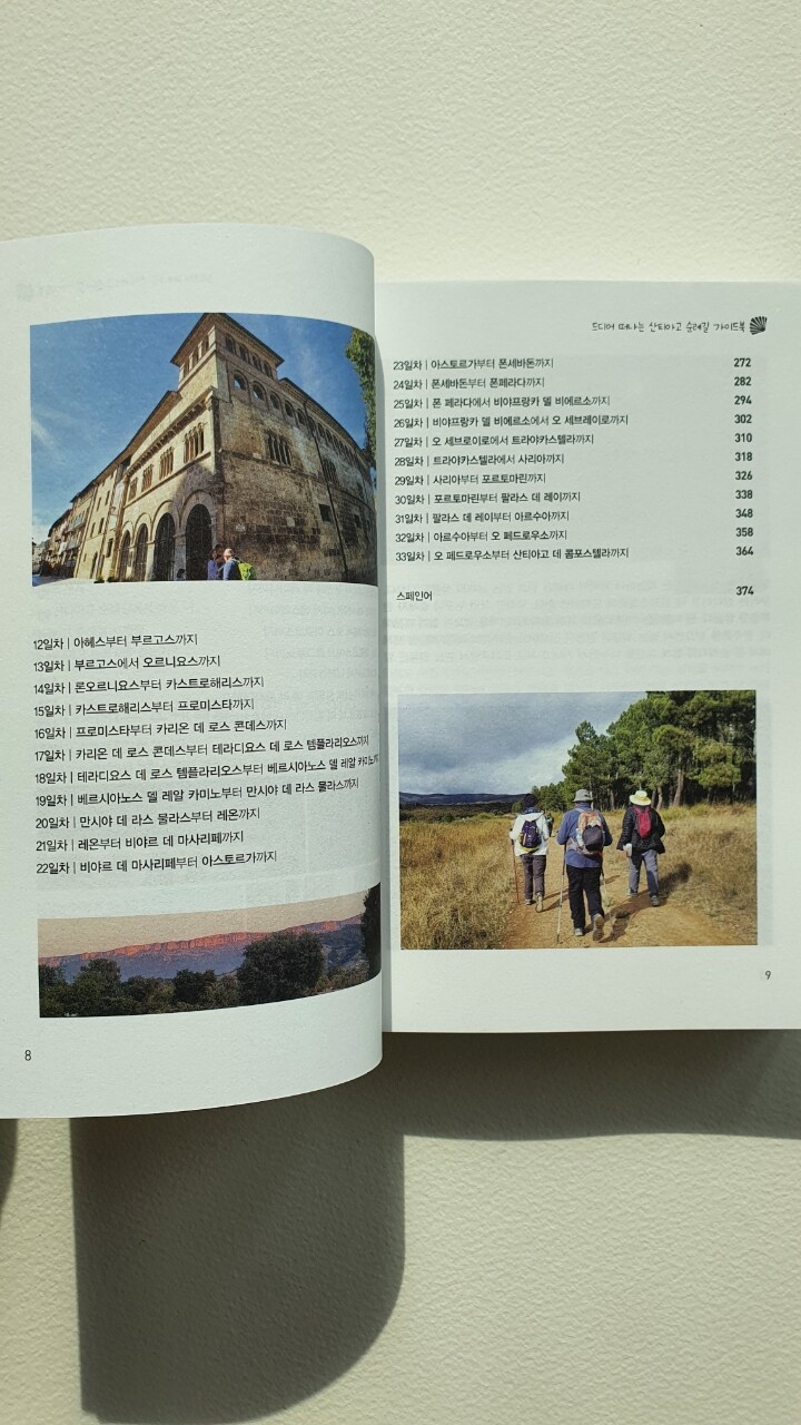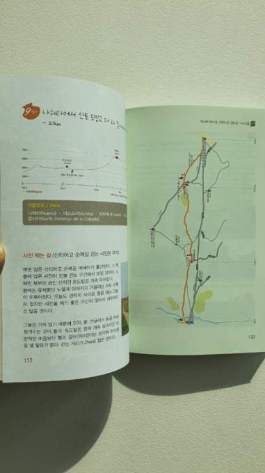가야 할 거리와 지도, 그 주변 숙소와 마을 정보 등을 안내하는 여행책이다.