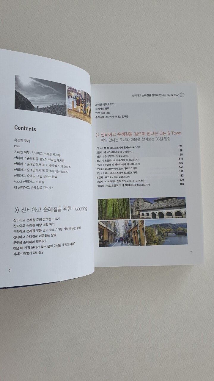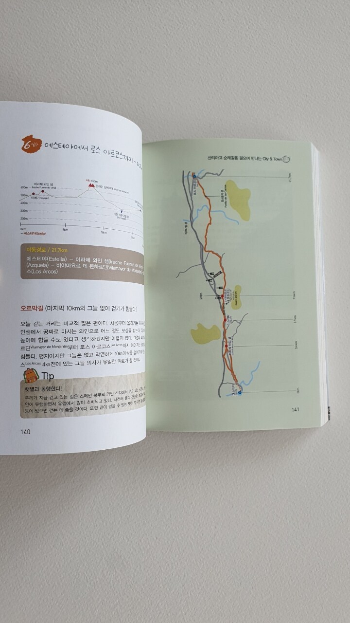 가야 할 거리와 지도, 그 주변 숙소와 마을 정보 등을 안내하는 여행책이다.