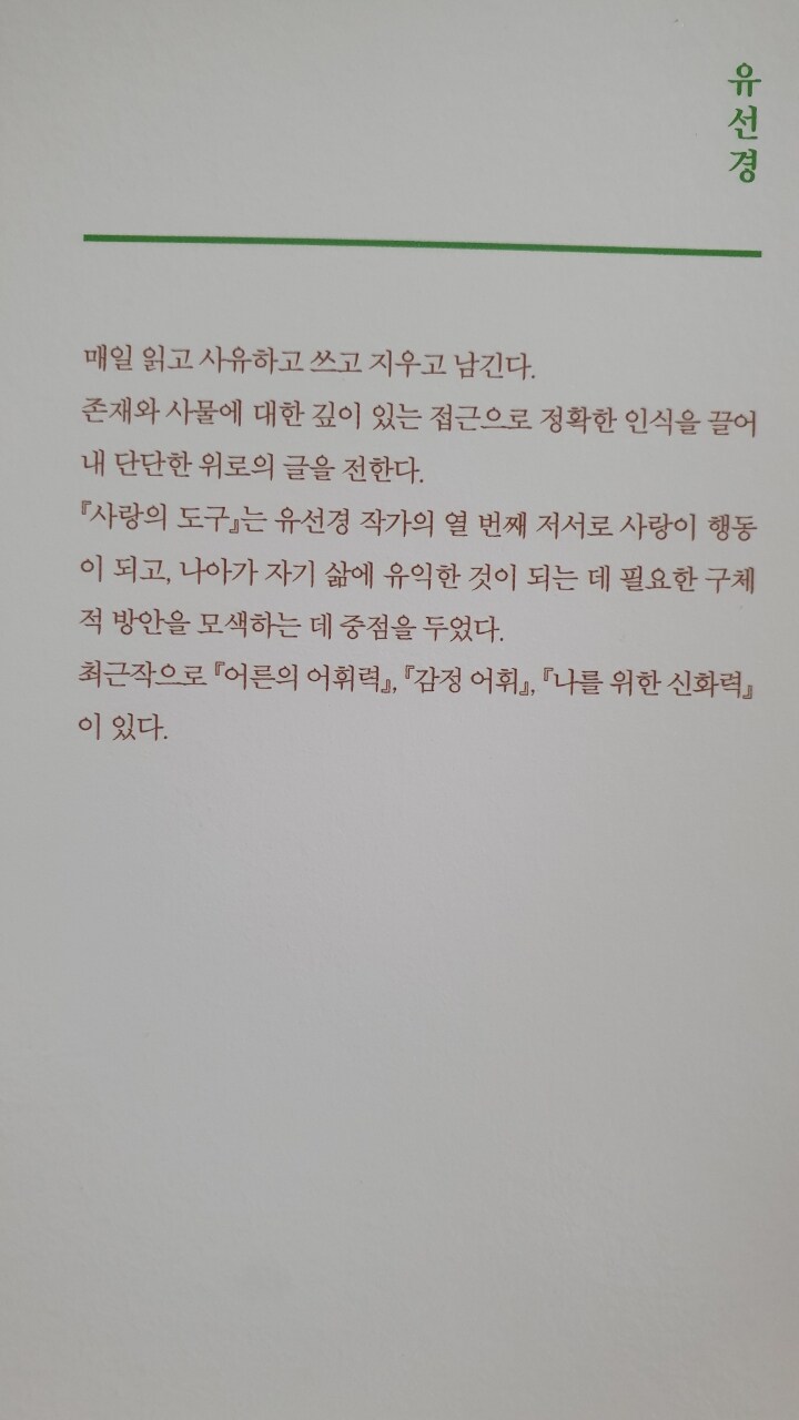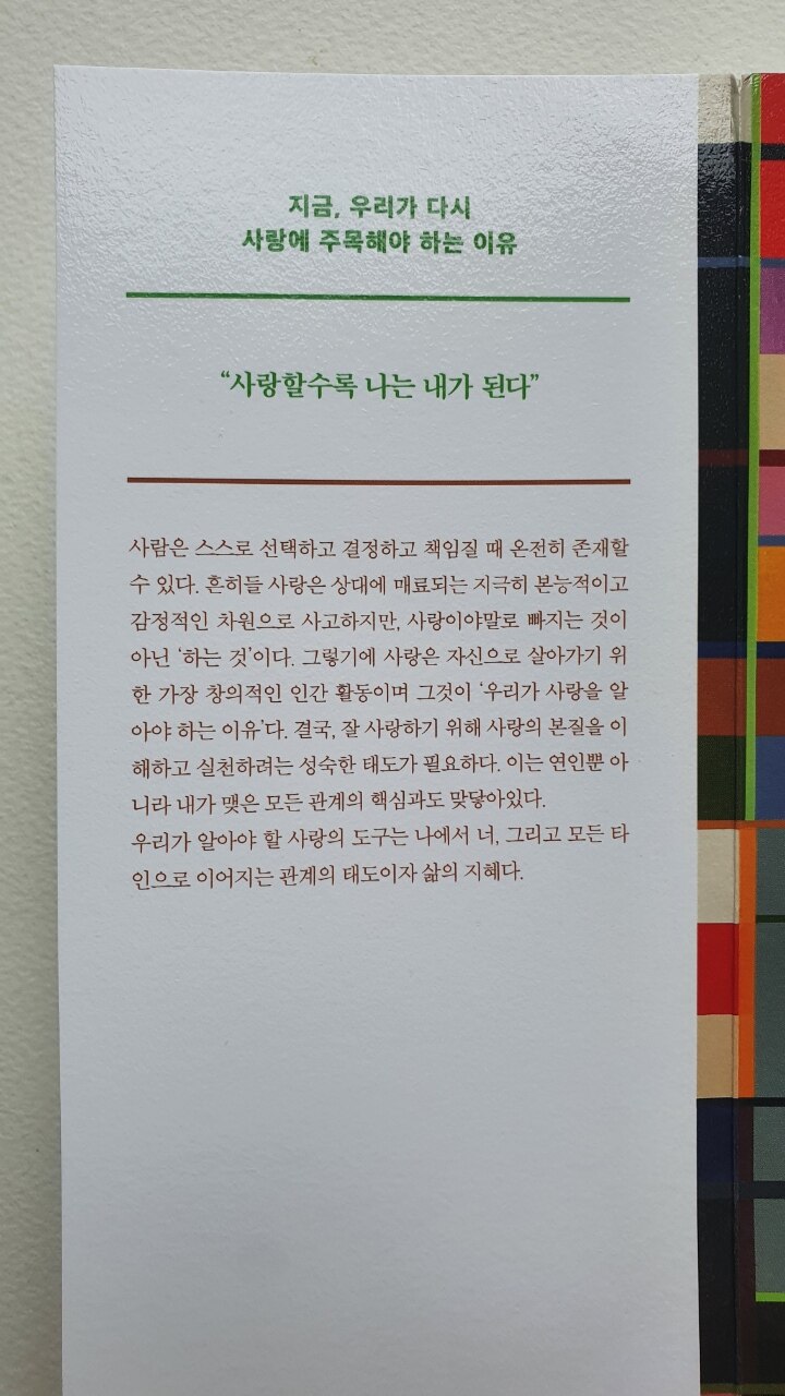 그 기준을 만들기에도 이 책은 정말 유용하다. 책을 읽고 '나만의 사랑법'이라는 제목의 작은 책을 만들어 보아도 좋을 것이다.