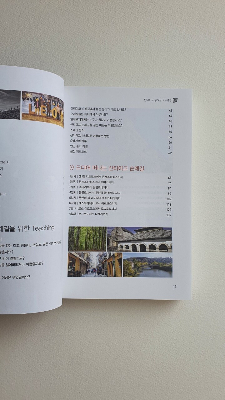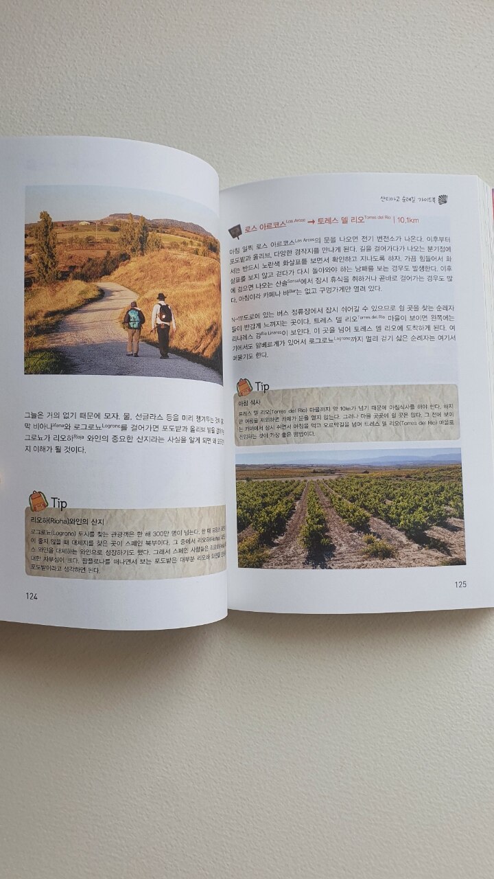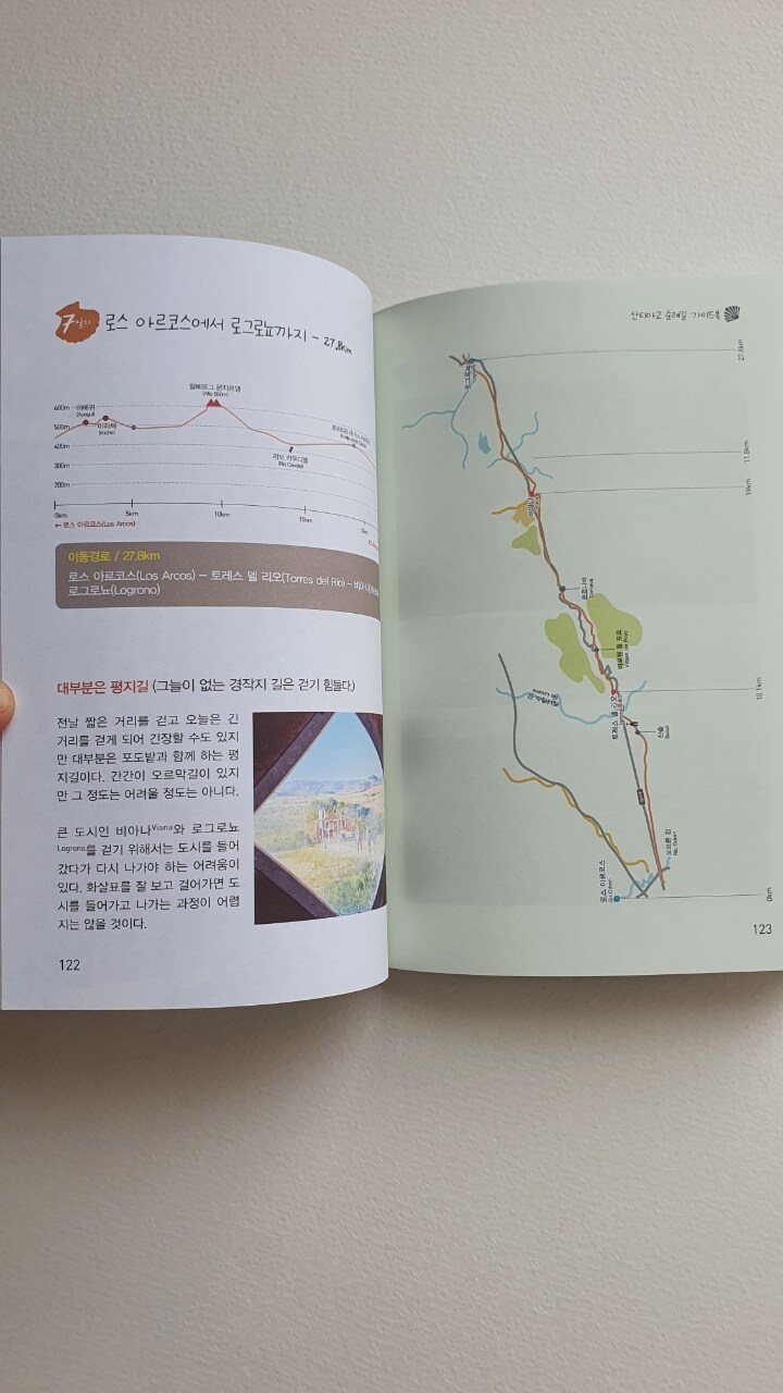 가야 할 거리와 지도, 그 주변 숙소와 마을 정보 등을 안내하는 여행책이다.