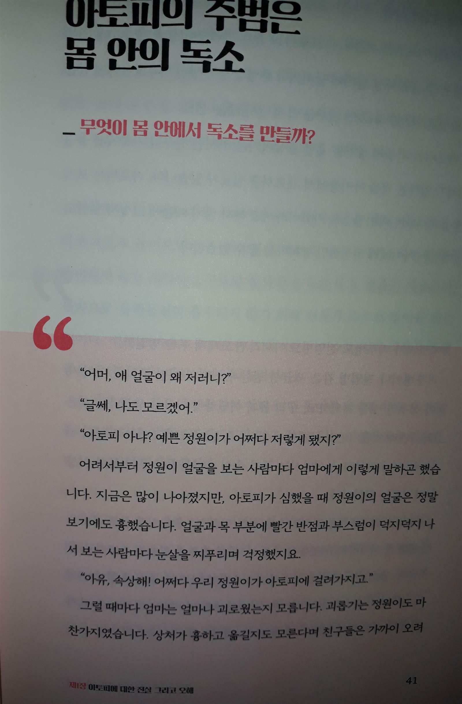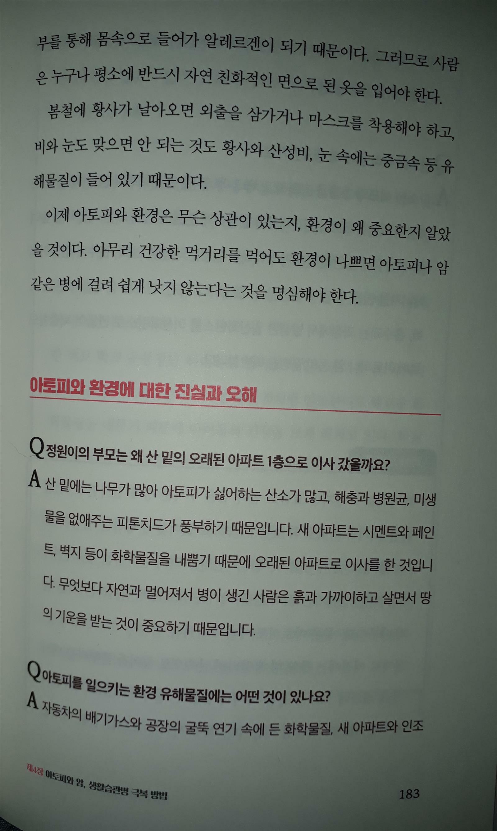 아토피에 걸리면 밤에 더 가려운 것은 부신이라는 장기가 분비하는 호르몬과 밀접한 관계가 있다. 신장의 바로 위쪽에 붙어 있는 부신은 신장과는 그 구조와 기능이 전혀 다르다. 밤에 따뜻한 이불을 덮고 잠을 자면 집먼지 진드기 때문에 가려움증이 더 심해질 수 있다. 따뜻한 이불은 집먼지 진드기가 서식하기 좋은 최적의 환경으로,이불 한 장에는 적어도 약 80만 마리의 집먼지 진드기가 있다고 한다. 요즘 아이들을 보면 예전보다 키와 몸무게가 많이 늘어났지만,걱정스러운 것은 열 명 두 명이 비만이라는 사실이다. 비만인 아이들의 대부분이 간에 이상이 있고,핏속에 지방질과 당분이 너무 많으며,심지어 고혈압까지 앓고 있는 것으로 나타났다. 이보다 더 무서운 것은 아이일때 비만이면 어른이 돼서는 비만이 될 가능성이 크다는 점이다. 사랑하는 아이들이 커서도 계속 뚱뚱한 몸으로 살아야 한다는 것은 생각만해도 끔찍한 일이 아닌가.. 문제는 자연건강법에 대한 믿음과 확신이다. 이 책에서 소개한 자연 건강법을 직접 실천하면서 건강한 삶을 이어나가길 기대하며,자연건강법으로 건강을 되찾은 사례들이 있습니다. 생활습관병 환자가 급증하고,특히 웰빙 바람까지 불면서 최근 들어 우리나라에서도 채식을 하는 사람이 크게 늘고 있다. 가능하면 생명력이 있는 그대로 생식을 하고 끓이거나 삶는 화식을 피합니다. http://cafe.naver.com/jhcomm/13279 리뷰어스 클럽 서평 하단 배너 대한민국 모임의 시작, 네이버 카페 cafe.naver.com #건강에세이 #습관과먹거리를바꾸면 건강이보인다 #박원석 #소금나무 #리뷰어스클럽 ♤출판사로부터 도서를 제공받아 작성된 리뷰입니다.감사합니다.
