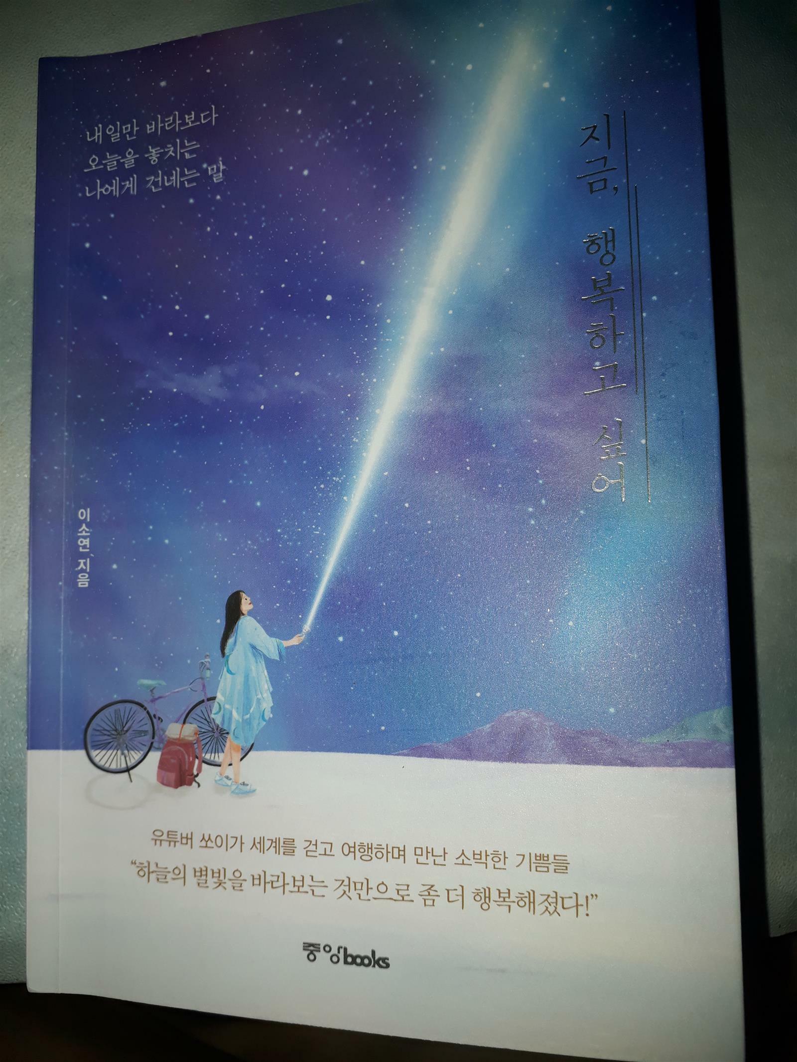 코로나19때문에 여행을 하기에는 어려운 시기에 책으로 세계여행을 하는 기분이 들어서 읽는 동안 즐거웠습니다. 때때로 누구에게나 내가 지금 잘 살고 있는지에 대한 의문이 떠오르고 예기치 못한 일로 아파하고 눈물을 흘리기도 합니다. 저자 이소연(쏘이)역시 만 23살에 국가공인 노무사 시험에 합격 했을 정도로 열심히 살았다고 자부했으나 어느순간 오히려 행복하지 않은 자신을 발견하고 도망치듯 떠난 세계 여행에서 오히려 진짜 나를 만났다는 저자는 자신의 가치를 증명하기 바쁜 현대 사람들에게 오히려 자신의 행복을 테스트해 봤는지 물어보곤 합니다. 베트남으로 떠나기 위해 다낭 비행기 티켓을 시작으로 생일때는 히말라야에서 보내게 됩니다. 고산병과 추위,공포의 2,000여개의 오르막 계단들을 이겨내고 과 점퍼 옷을 입고서 당당히 그 곳에 도착합니다. 대자연과 더불어 다양한 액티비티를 할수 있는 시스템이 잘 되어있는 터키, 세계 3대 야경인 헝가리 부다페스트를 거치고, 헝가리 부다페스트,스페인 바르셀로나,볼리비아 우유니 사막에도 도착합니다.우유니 사막은 물이 차올라 하늘과 땅의 경계가 없는 듯한 우유니 사막은 마치 새로운 행성 같다고 표현합니다.) 100일 동안의 여행을 마치고 한국으로 돌아와서 크리에이터란 직업을 갖게 되고 또 다시 출장으로 미얀마를 시작으로 여행을 합니다. 삼총사의 제주도 여행도 인상 깊었고 친구의 죽음으로 많이 힘들었을텐데.. 책은 산티아고의 순례길의 여행으로 끝납니다. 내일은 또 어떤일이 나른 기다리고 있을까! 이제는 두려움보다 더 큰 설레임으로 내일을 기다린다고 합니다.