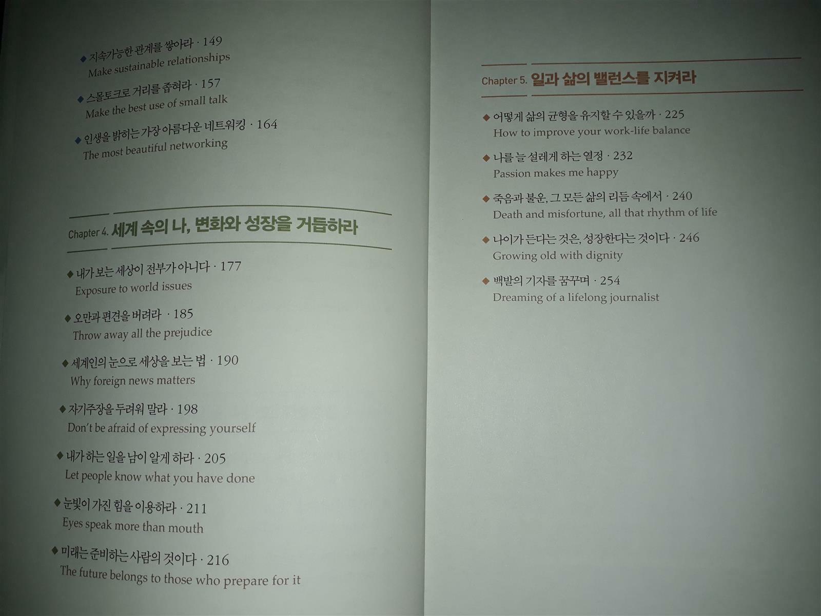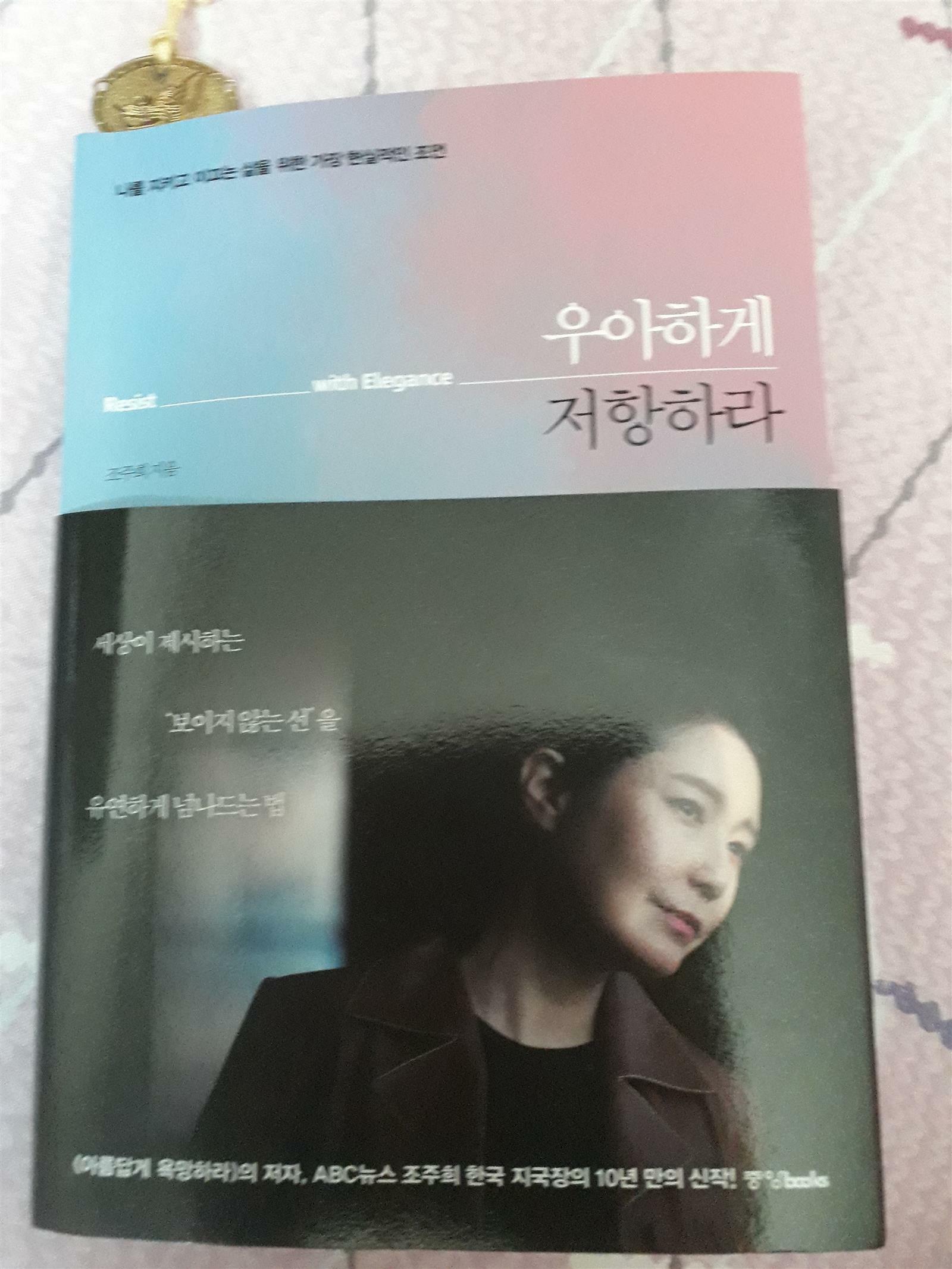 우아하게 저항하게 저자인 조주희님은 10년전에 아름답게 욕망하라의 저자입니다. 현재 미국 ABC 뉴스 한국 지국장.30여 년 동안 미국,싱가포르,홍콩,한국 등 아시아 전역을 커버하며 국제 정세를 전하는 외신 기자이자 전방위적 글로벌 미디어 전문가 입니다. 외신기자로 세계를 무대로 종횡무진 열정적으로 일을 한 모습이 책 한권에 고스란히 있습니다. 사소한 것이라도 잘하는 것을 만들고,인맥의 중심에 있는 사람을 찾고,SNS를 잘 활용하라고 조언합니다. 나를 늘 설레게 하는 열정 부분에서 배울점들이 몇가지 보입니다. 1)한 발짝 떨어져서 넓게 보라. 2)태도는 연습을 만들 수 있다.-당당하게 악수를 청하고 손을 힘주어 잡아라,상대방에게서 눈을 떼지 말라,서 있을 때는 적당한 거리를 유지하라. 자신의 감정과 진심을 눈빛으로 잘 표현할 수 있다면 무엇보다 좋은 소통의 도구를 얻을 수 있을거 같습니다. 책을 읽으면서 마음 속에 남는 귀절이 있습니다. "우리 중 누구도 나쁜 일이 일어나는 것을 막을 수 없다.그것은 단순히 인생의 리듬의 일부다.하지만 열쇠는 우리가 어떻게 반응 하는지에 있다.더 괴로워지는 걸 택하거나,더 나아지는 걸 택하거나, 그것은 하나의 선택이다."