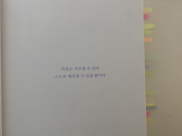 자유는 성장이다. 자유로워진다는 것은 더 이상 세상에 의존하지 않고 온전히 홀로 서 수 있는 나로 성장한다는 의미다. (생략)