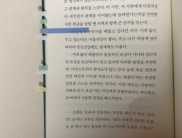 이처럼 사람과의 관계에서 생겨나는 모든 문제가 나의 문제이며, 올바른 방향으로 관계를 맺기 위해선 나를 지키면서 나와 관계 맺기가 우선이 되어야 한다는 사실을 이 책을 통해 다시 깨닫게 되는 순간이었다. 결국 우리 모두 자신의 문제점이라는 것이다. 왠지 머리를 얻어맞은 기분이었다.