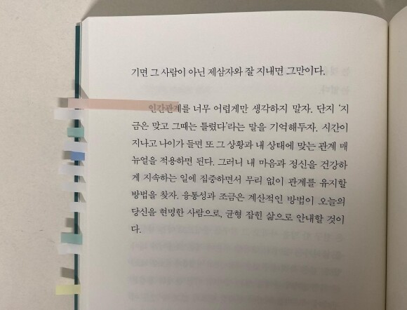 인간관계를 너무 어렵게만 생각하지 말자. 단지 ‘지금은 맞고 그때는 틀렸다’ 라는 말을 기억해두자. 시간이 지나고 나이가 들면 또 그 상황과 내 상태에 맞는 관계 매뉴얼을 적용하면 된다. 그러니 내 마음과 정신을 건강하게 지속하는 일에 집중하면서 무리 없이 관계를 유지할 방법을 찾자. 융통성과 조금은 계산적인 방법이 오늘의 당신을 현명한 사람으로, 균형 잡힌 삶으로 안내할 것이다. P.84