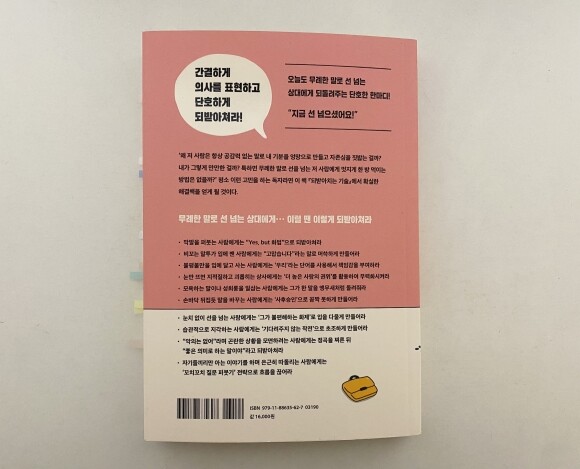 무례한 사람에게 제대로 대답하지 못해 속상했던 사람들이라면, 적당한 선을 지키면서 상대방에게 무례하지 않게 되받아치는 기술을 이 책으로 꼭 만나볼 수 있었으면 좋겠다.