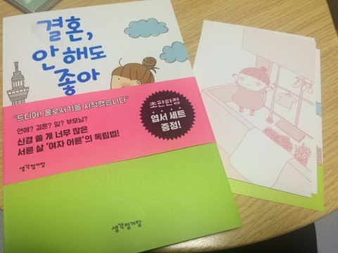 내용적인 측면에서 보면 왜 굳이 결혼 안해도 좋아라고 붙인 건지 사실 잘 이해가 되지 않습니다. 도입부분은 확실히 남자친구와 결혼여부와 관련해서 고민하다가 헤어진다는 측면에서 이 부분이 핵심적인가보다 했습니다. 그런데 페이지가 넘어갈 수록 뭔가 그저 혼자 살아가는 여성의 일상을 보여주고 있단 인상이 강했습니다. 그리고 더 나아가서는 이야기 흐름이 자꾸 끊긴다는 기분도 들었습니다. 아마도 제가 활자체에만 익숙해져있다가 만화로 갑자기 넘어와서 혼돈을 겪은게 아닌가 싶습니다. 그림 이면에 의도되어있는 것을 제대로 파악하지 못하고 그야말로 글자만 읽어서인 듯 싶습니다.