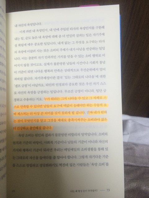 분명 재테크를 하는 이유는 돈에 인생을 저당잡히지 않고 싶어서입니다. 그런데 정작 실천을 하다보면 어느새 내가 왜 이렇게 궁상맞게 살고 있는거지? 라는 의문이 들게 마련입니다. 이 책을 읽기 전까지만해도 스스로 고민했던 부분입니다. 저자는 바로 이런 의문을 단번에 해소시켜주었습니다. 경제활동을 통해서 돈을 버는 이유는 진짜 제 자신에게 맞는 소비를 하기 위함입니다. 그동안 나름 아끼면서 살면서도 만족감을 느끼지 못했던 것은 바로 본말이 전도되었기 때문입니다. 한정된 자원 속에서 정말 나에게 맞는 소비를 제대로 할 때 그 값어치가 두배, 세배가 됩니다.