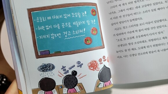 지키지 않으면 경고 스티커를 준다는 선생님의 주의사항에 마음이 답답하다.