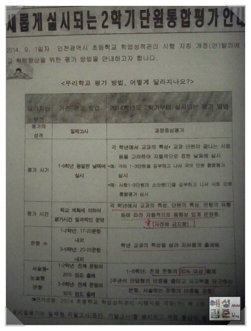 일제고사에서 과정 중심 평가로 달라진다는 내용으로 가정통신문이