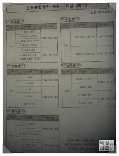 가정통신문 내용으로는 시험 보는 날짜가 3일로 되고 1과목에서