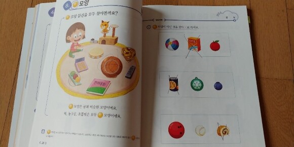 1부는 입체도형과 평면도형을 이해하고 모양과 공간에 대한 감각을 키울 수 있도록 유도한다.